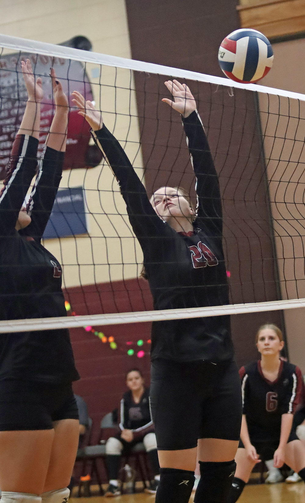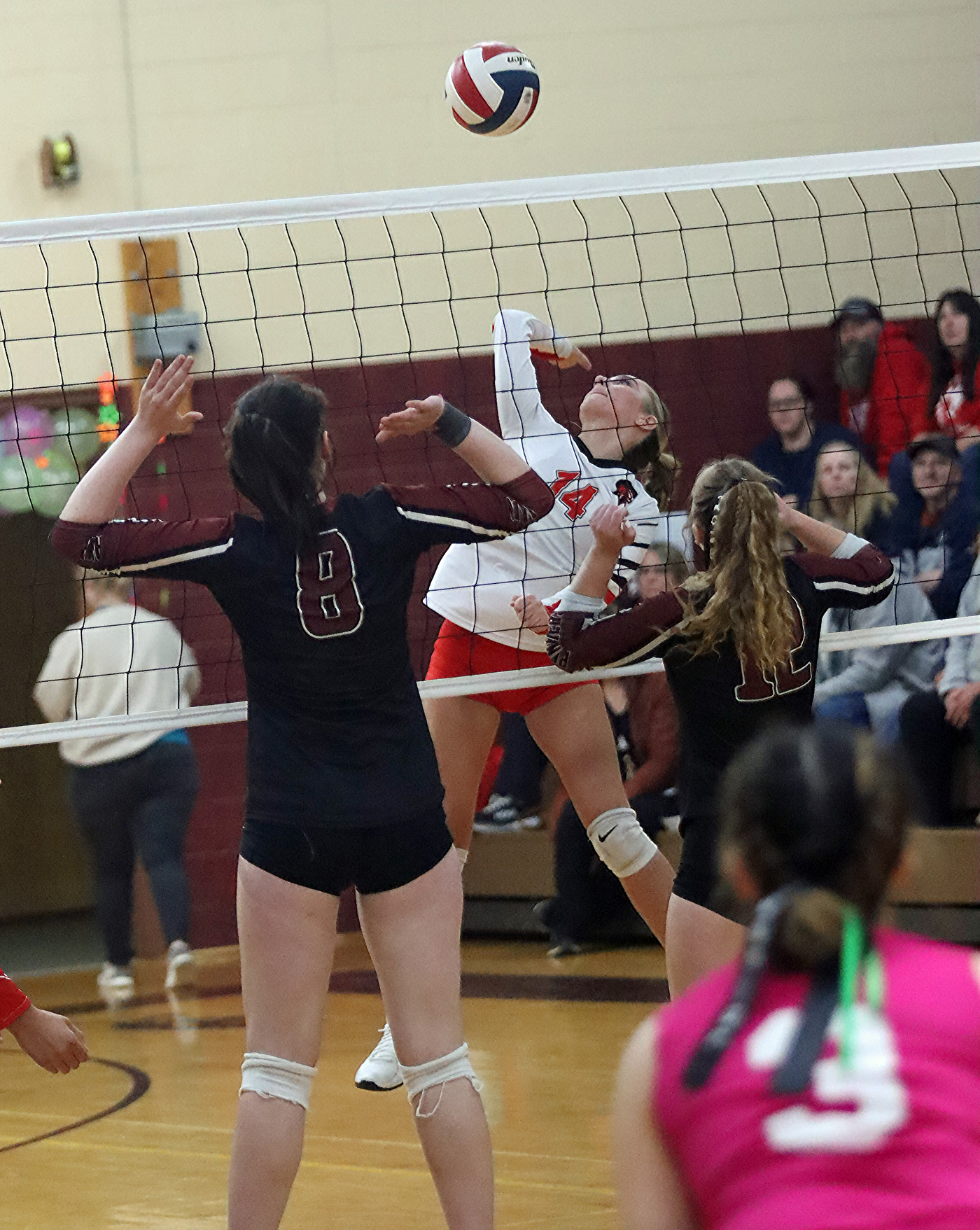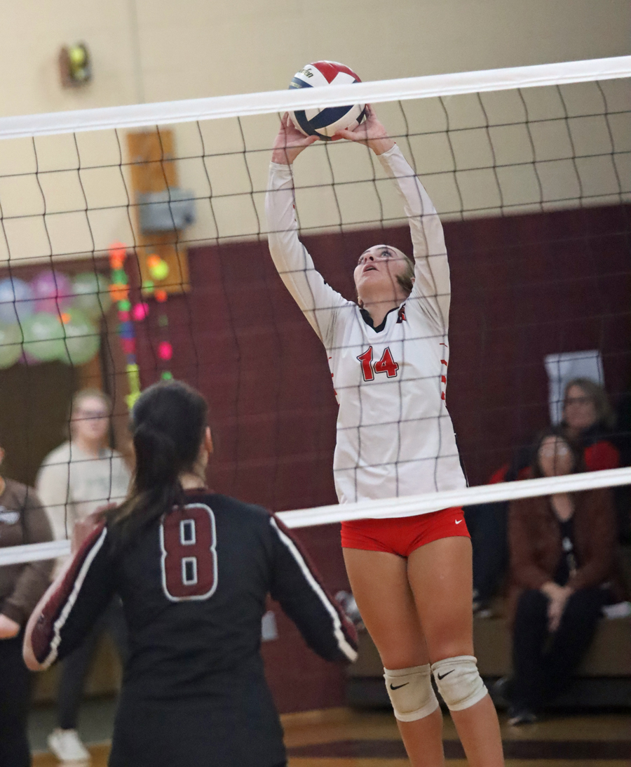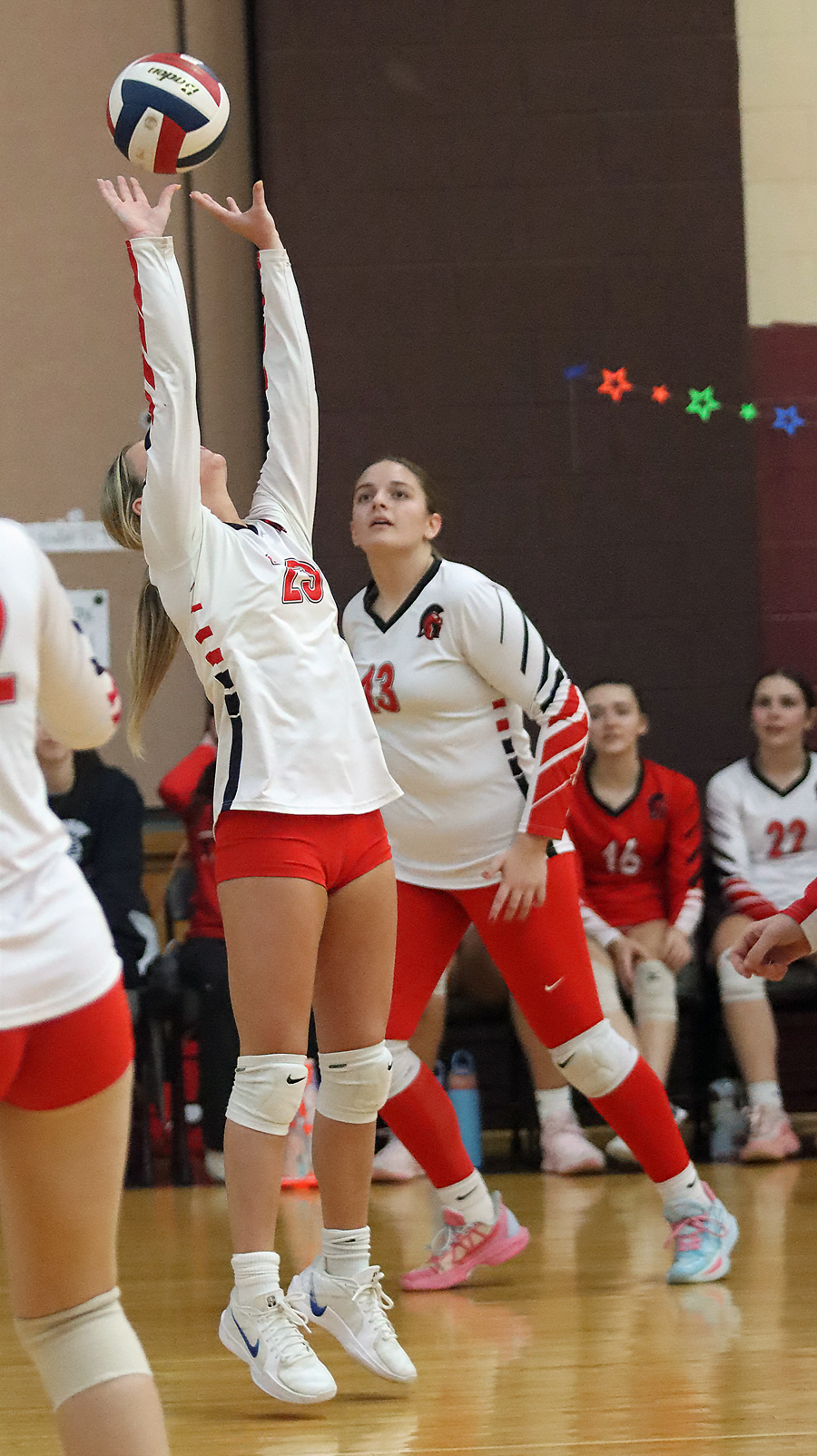 Amber White had a kill with a block, with Peyton Miller getting a dig. Liana Lyon had two aces, with Hailey Watson adding a kill.