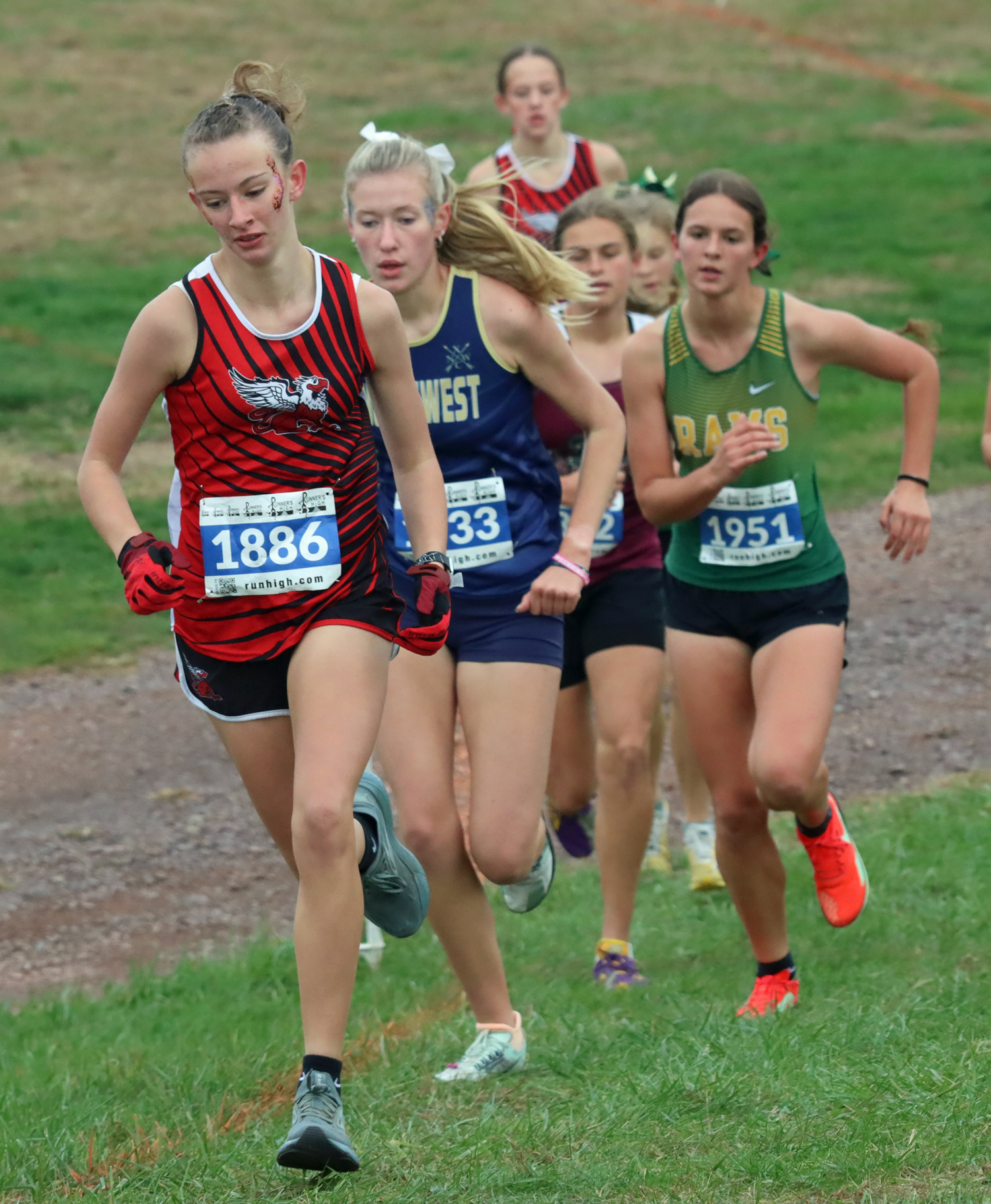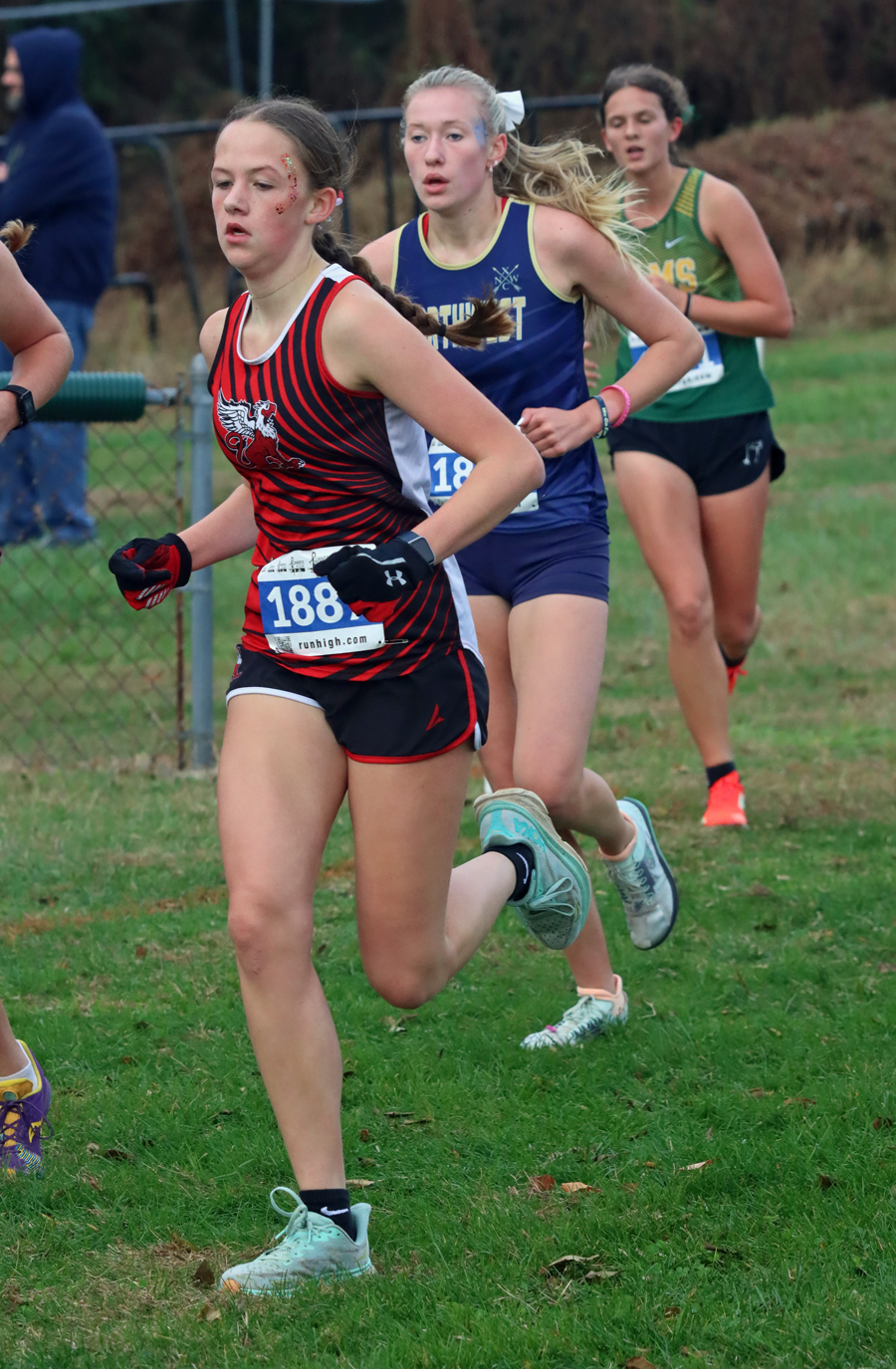 Paige Jordan (22:02.1) was 10th overall, Adilynn Thibodeault (22:27.1) took 12th, and Guare (25:48.7) came in 18th.