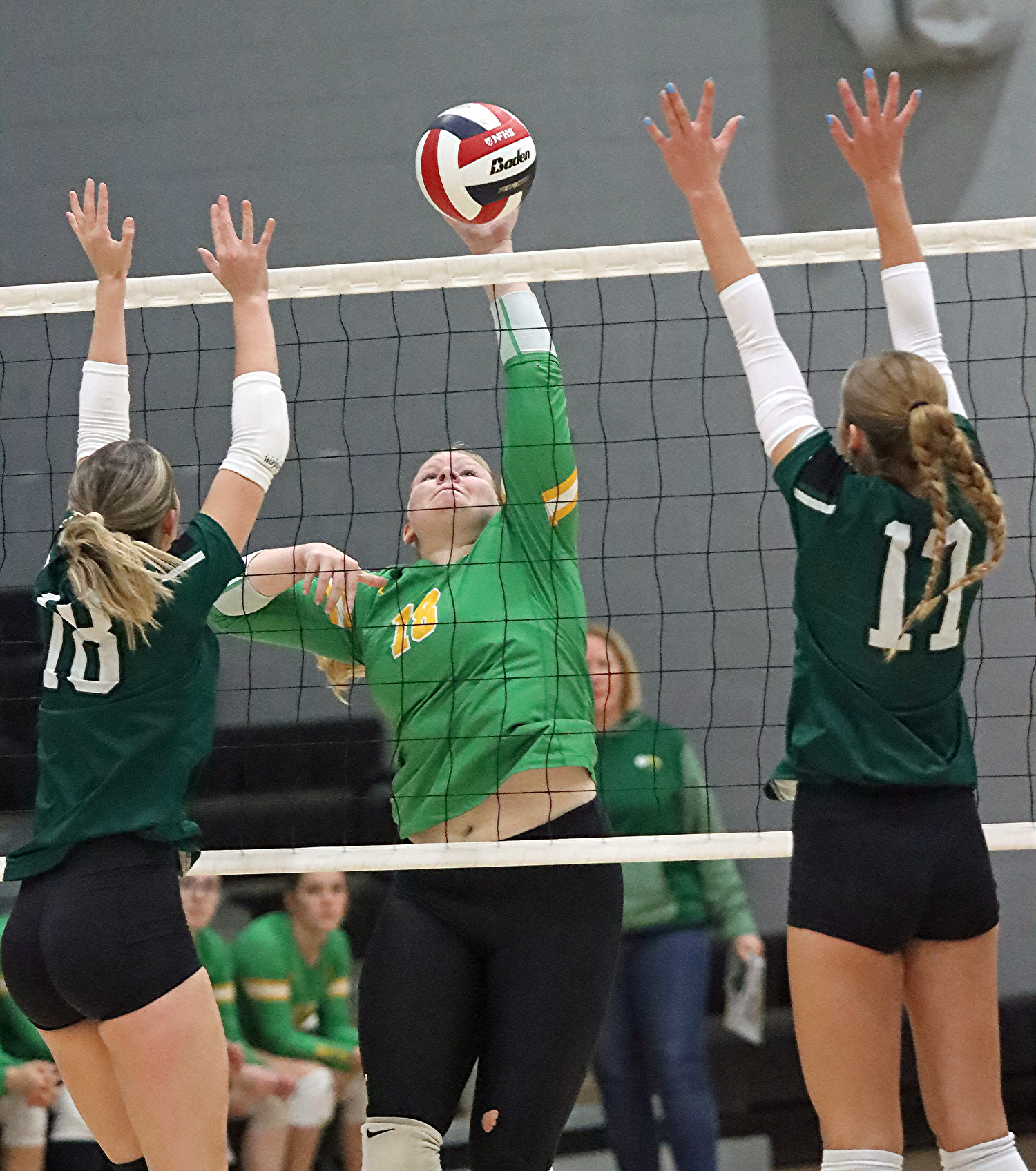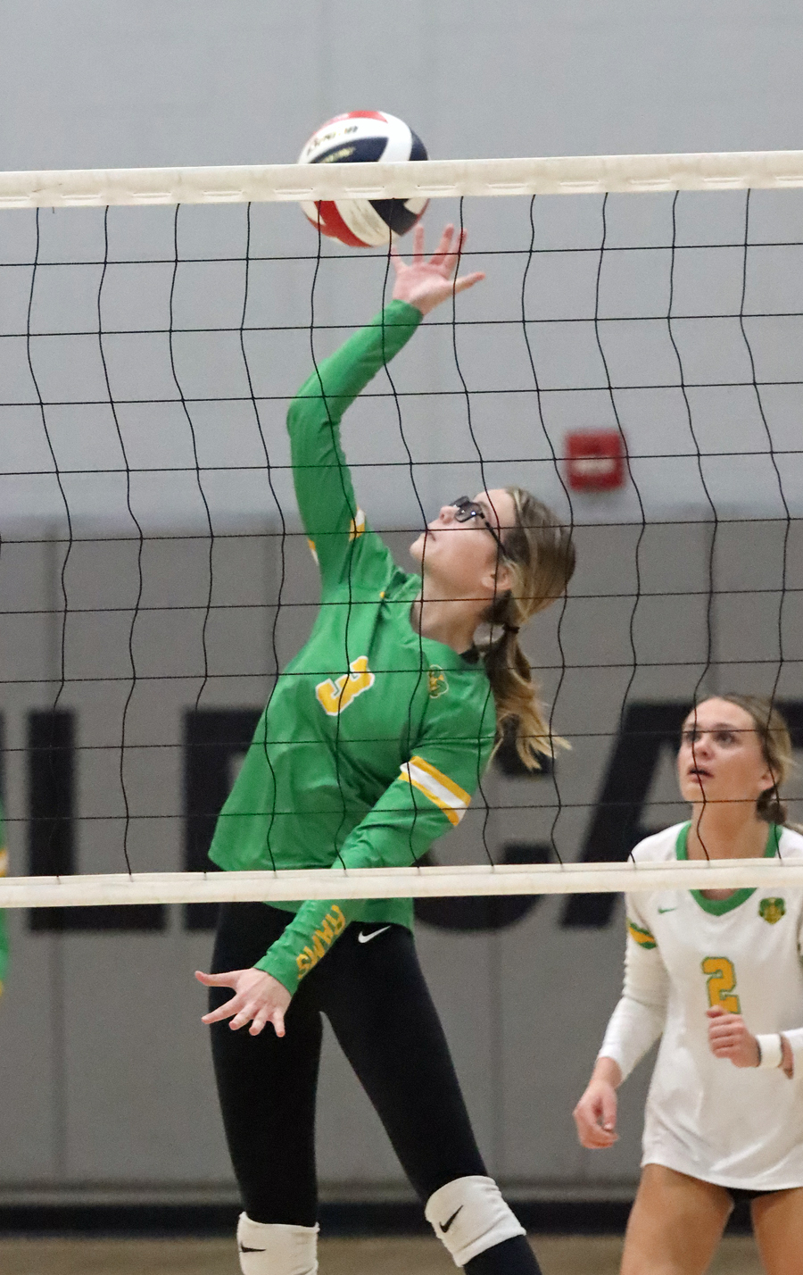 Jalynn Herda notched six kills, five blocks, three digs, and an ace with Addison Fluck getting six kills, four digs, two aces, two assists, and a block.