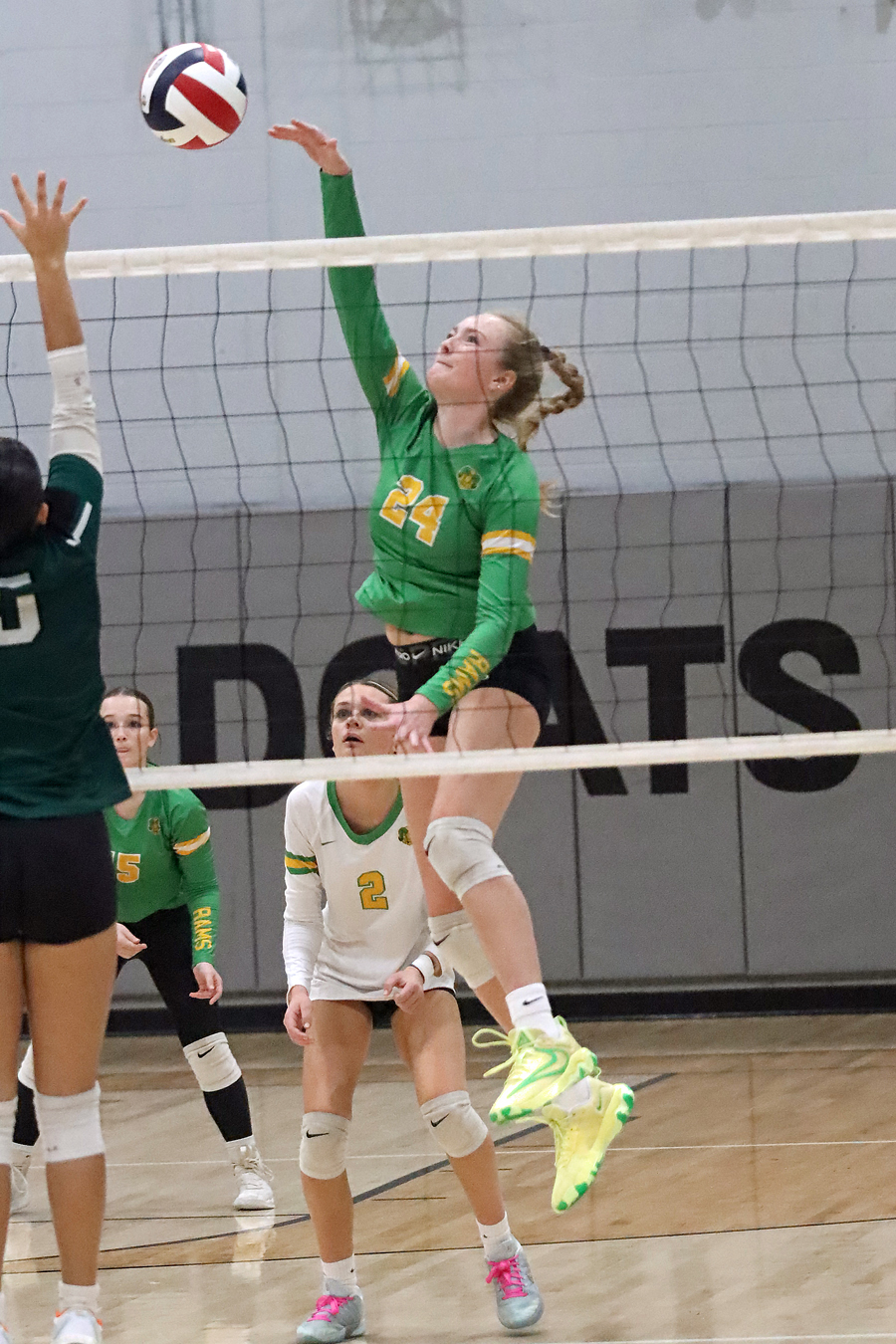 The Rams came out strong in the second set as they went up 4-0 on the strength of two Jaylynn Herda blocks.