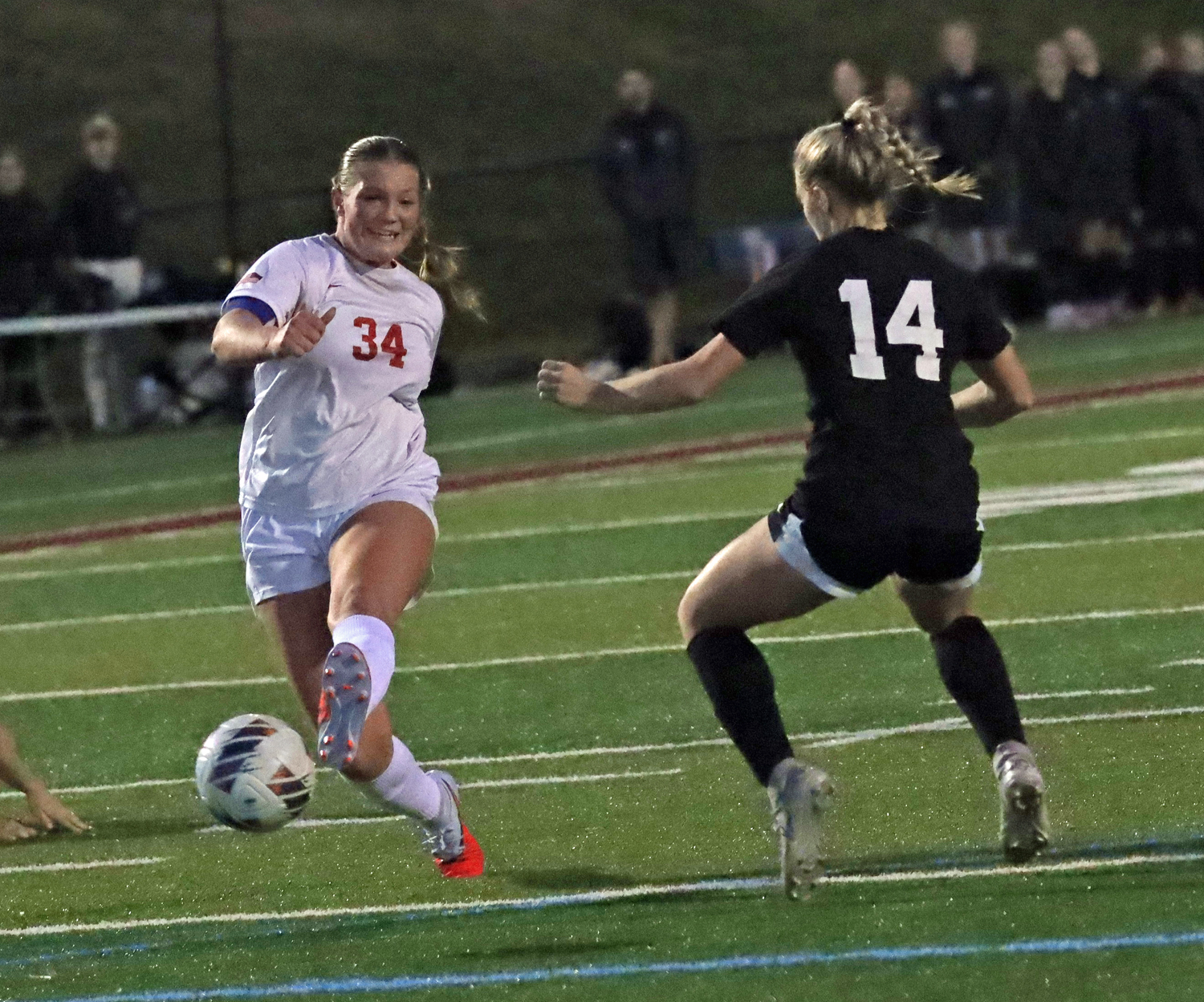 The first real scoring chance came 10 minutes in as McRoberts got a breakaway 1-on-1 with the keeper, but her attempt went wide right.