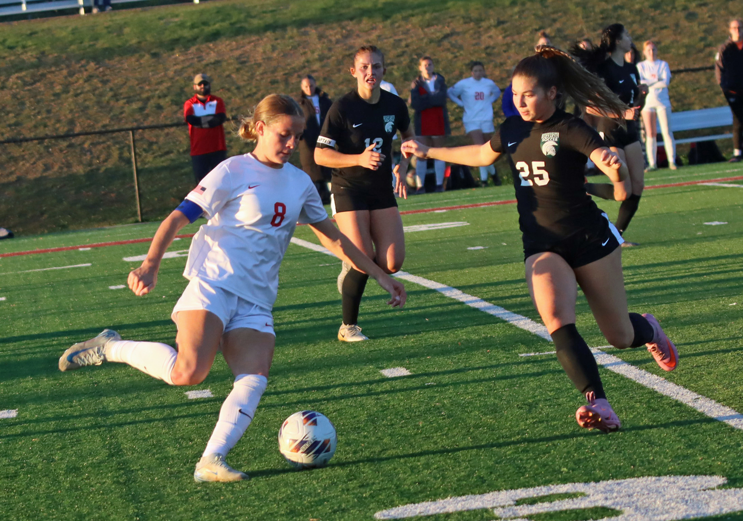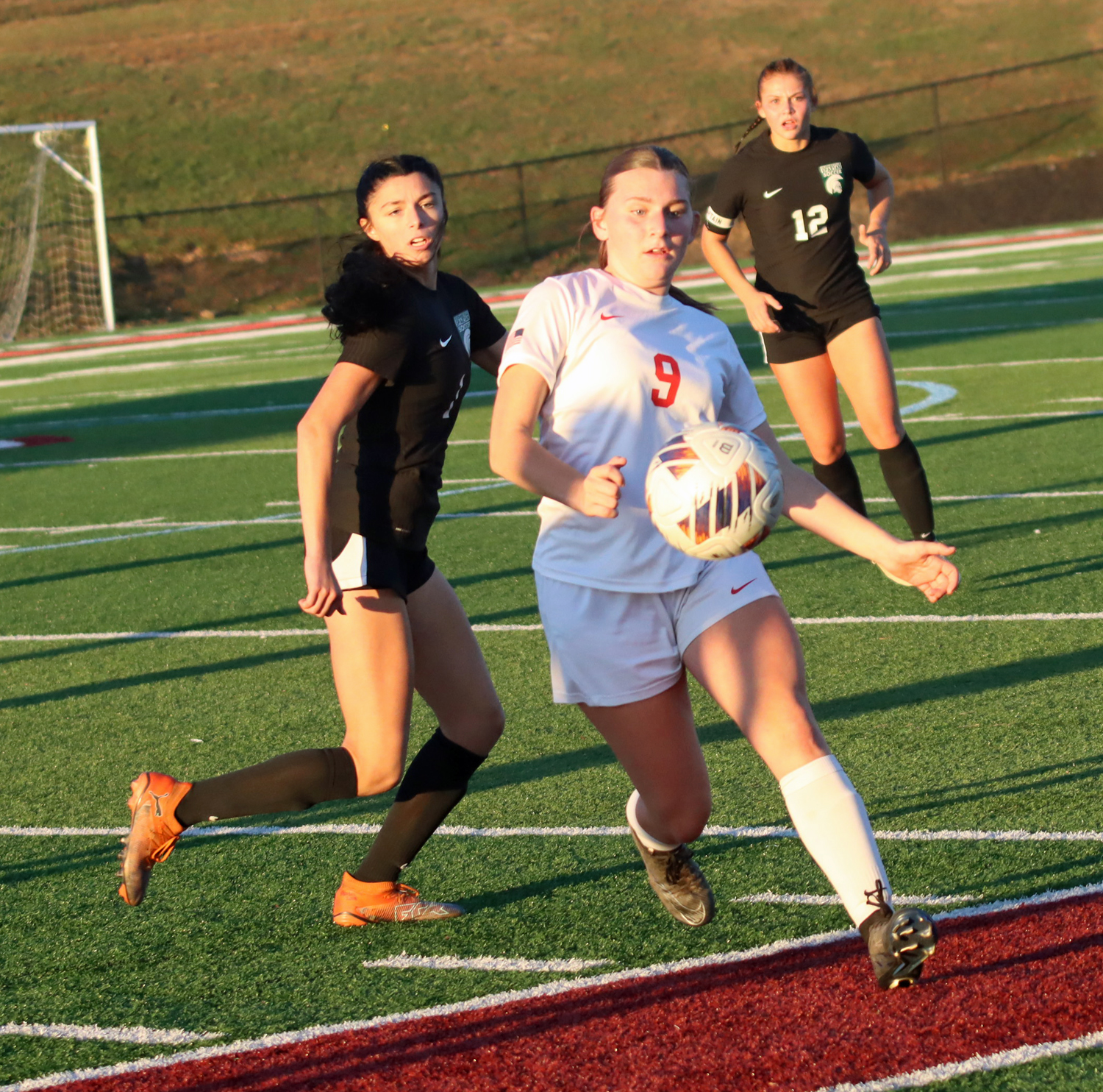 The whole defense played much better this time around as they kept the Spartan passing attack largely outside the box while keeping Hughesville’s quick attacks to a minimum, as the shots were 8-8 though Hughesville had a 10-2 edge in corner kicks.