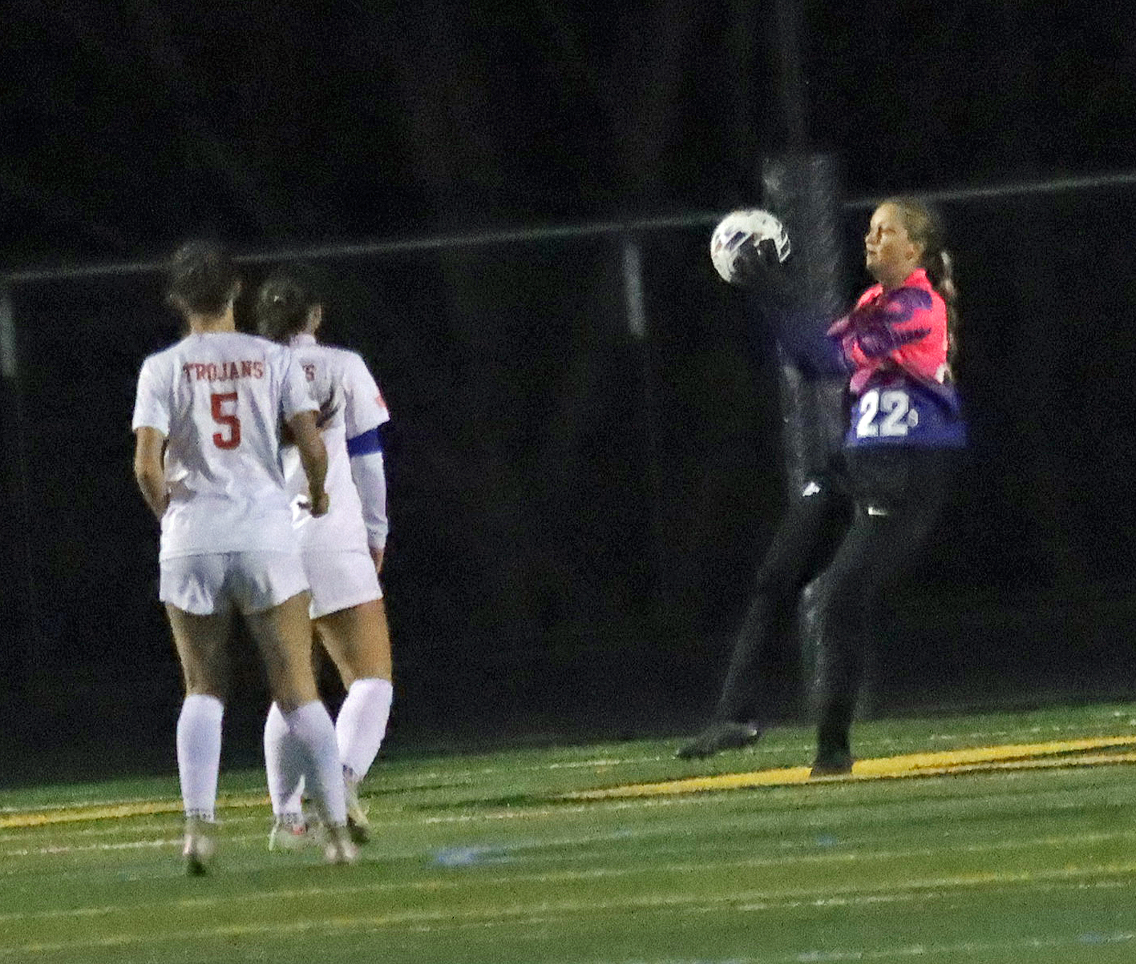 Izzy Renzi made seven saves in net for the Trojans.