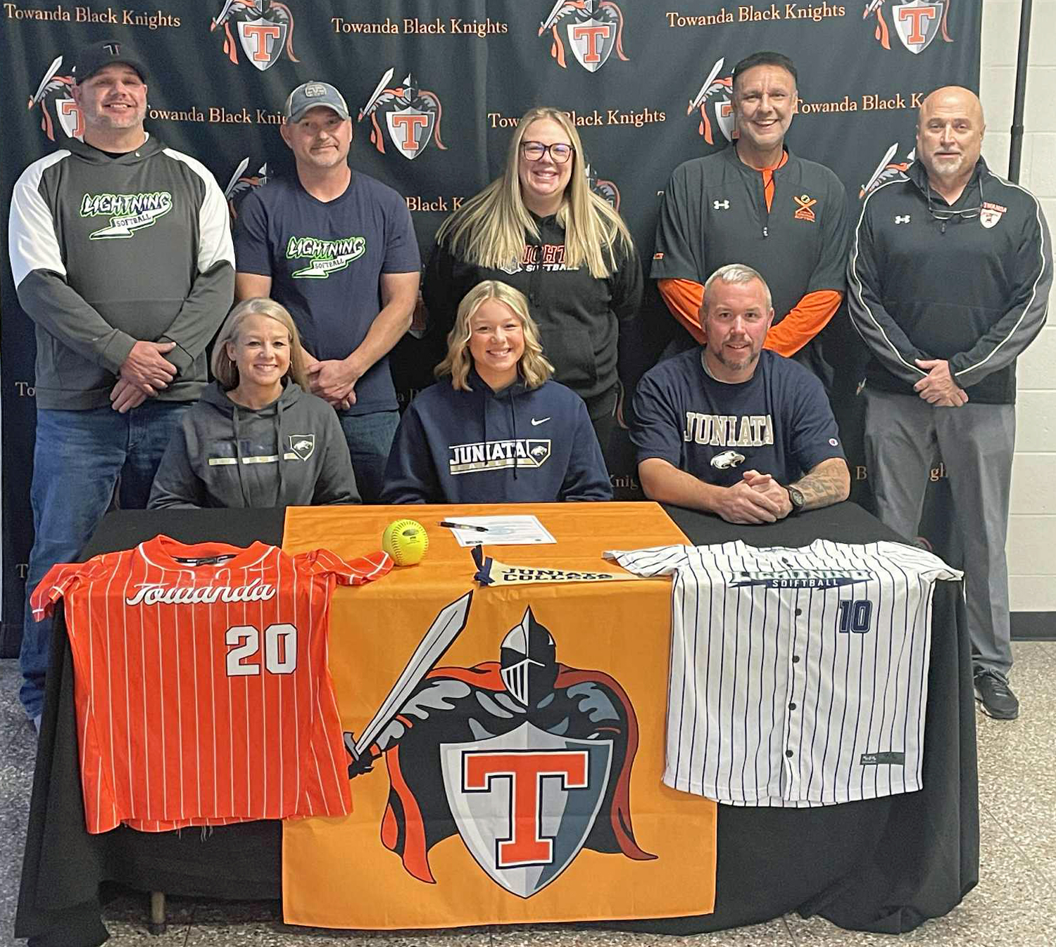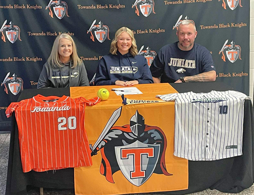BY CHRIS MANNINGNorthern Tier Sports ReportTOWANDA — Towanda’s Caedence Wells will be playing for Juniata softball at the next level after signing with Eagles on Monday.