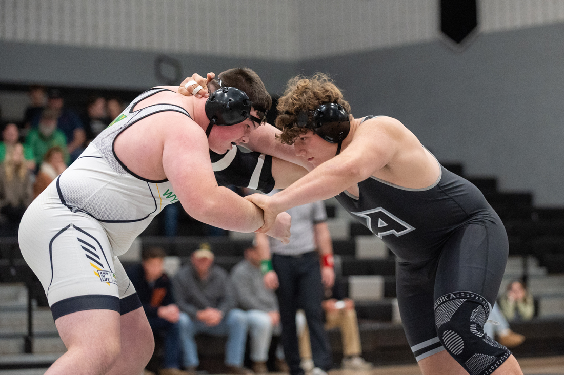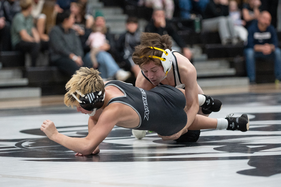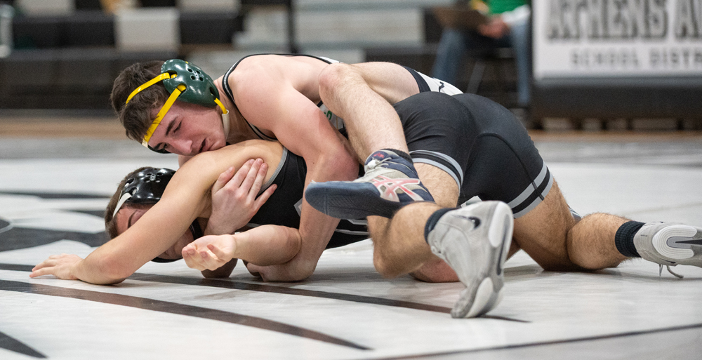 Athens rallied in the heavyweights as Connor Davidson (189), and Brenden Comstock (285) both scored falls, with Chace VanDyke (107) getting a forfeit.
