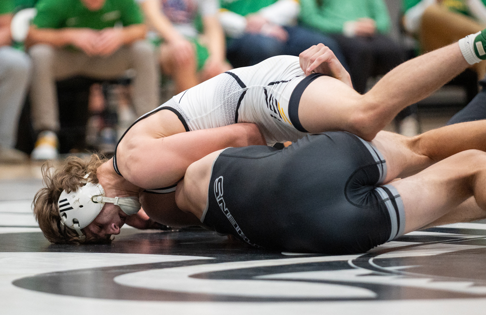 Harvey and McMicken followed with a pair of first period falls, with Harvey pinning Urijah Souder in 1:18, while McMicken pinned Wilson Kinsman in 56 seconds for a 23-6 lead.