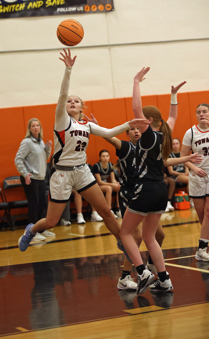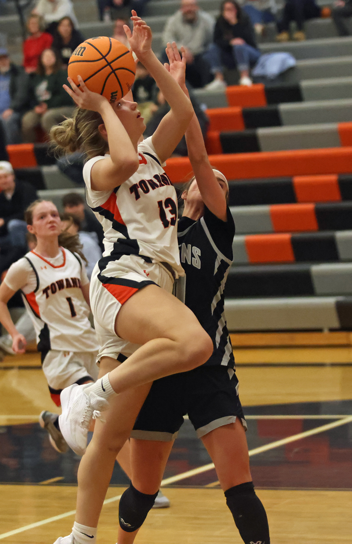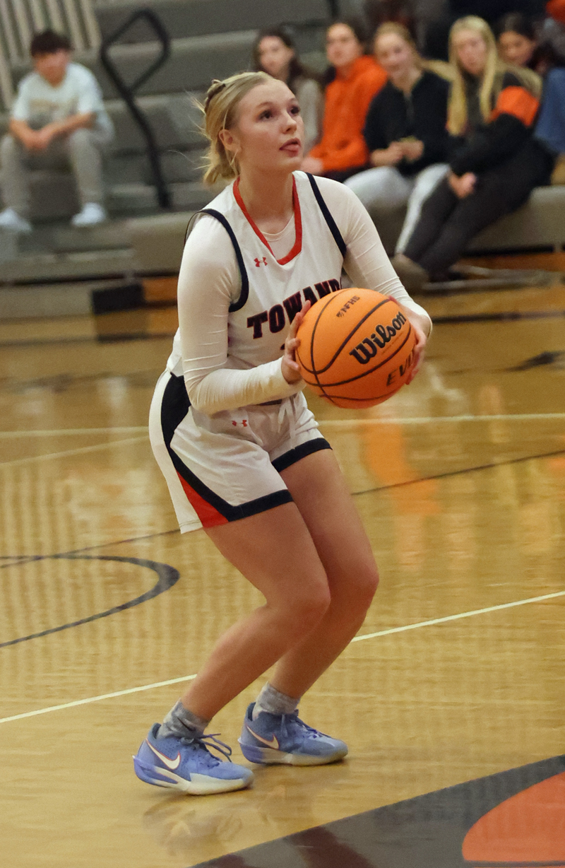 Brynn Woodruff had 12 points, on 12-for-20 shooting from the free throw line, six boards, and two steals to lead Towanda as