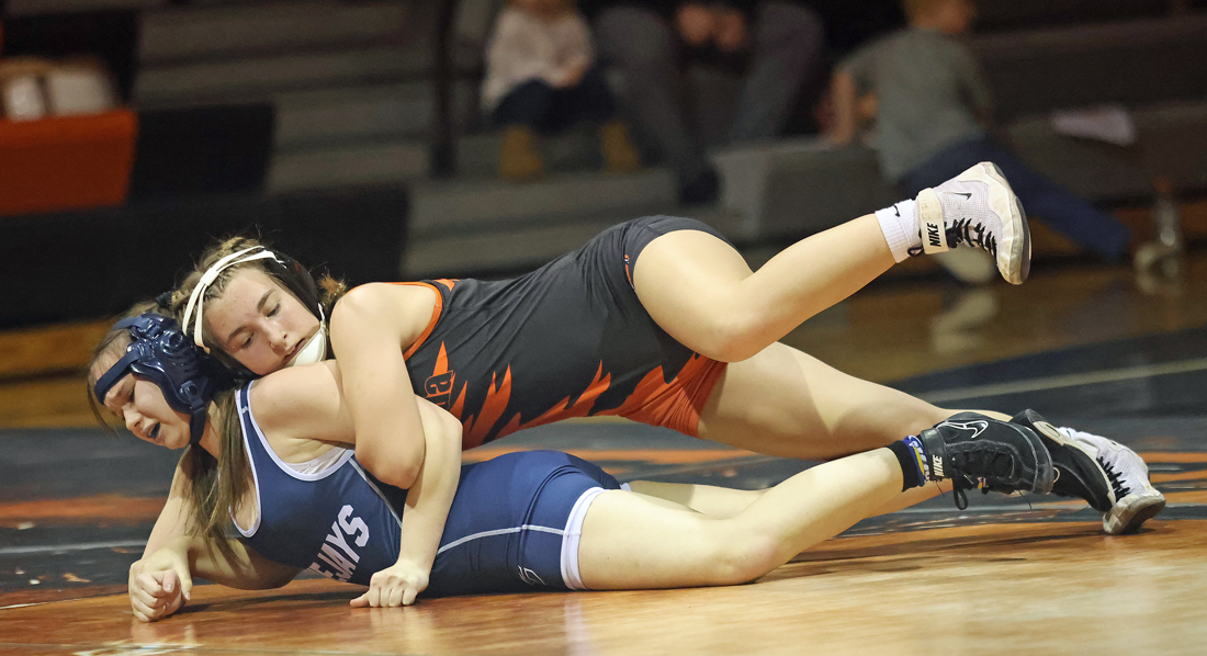 Kaylee Johnson (100), Kendal Cook (148), and Adelee Wecker (170) all had forfeits as Kaylen Sluyter (118), Kenzie Brown (130), Ily Benjamin (142), and Elizabeth Naughton (155) all scored falls.