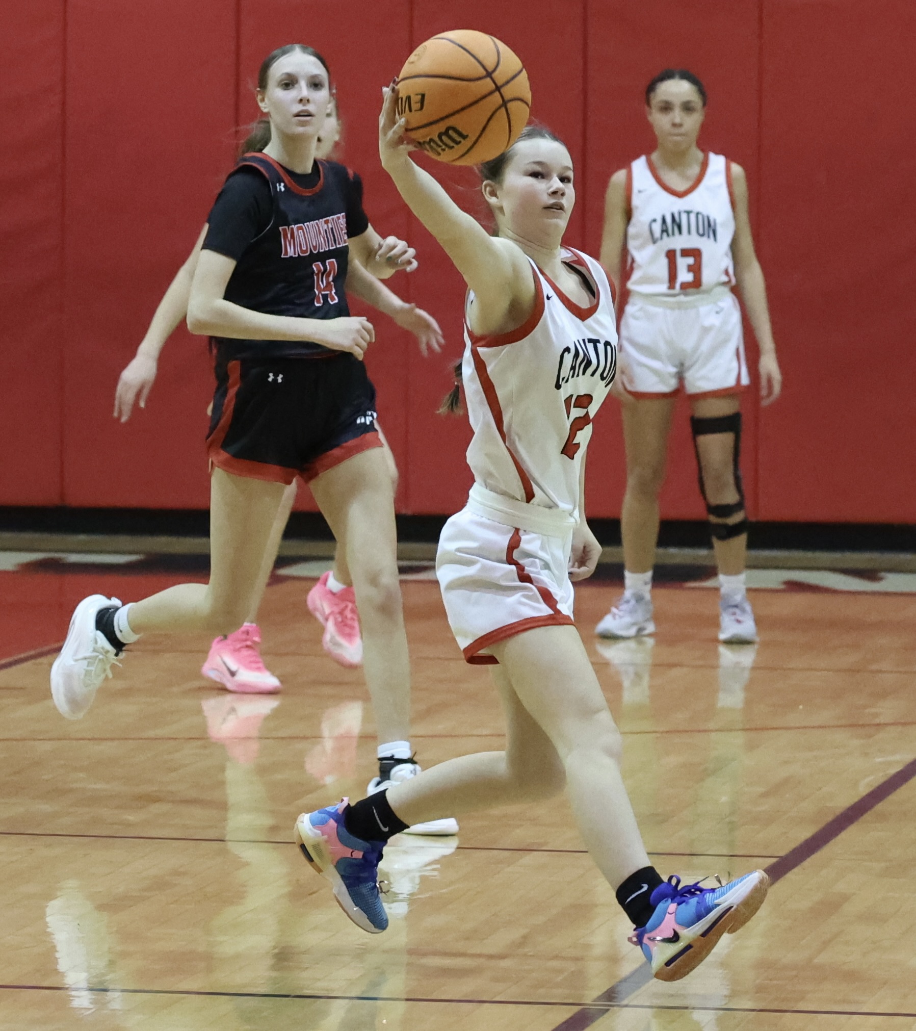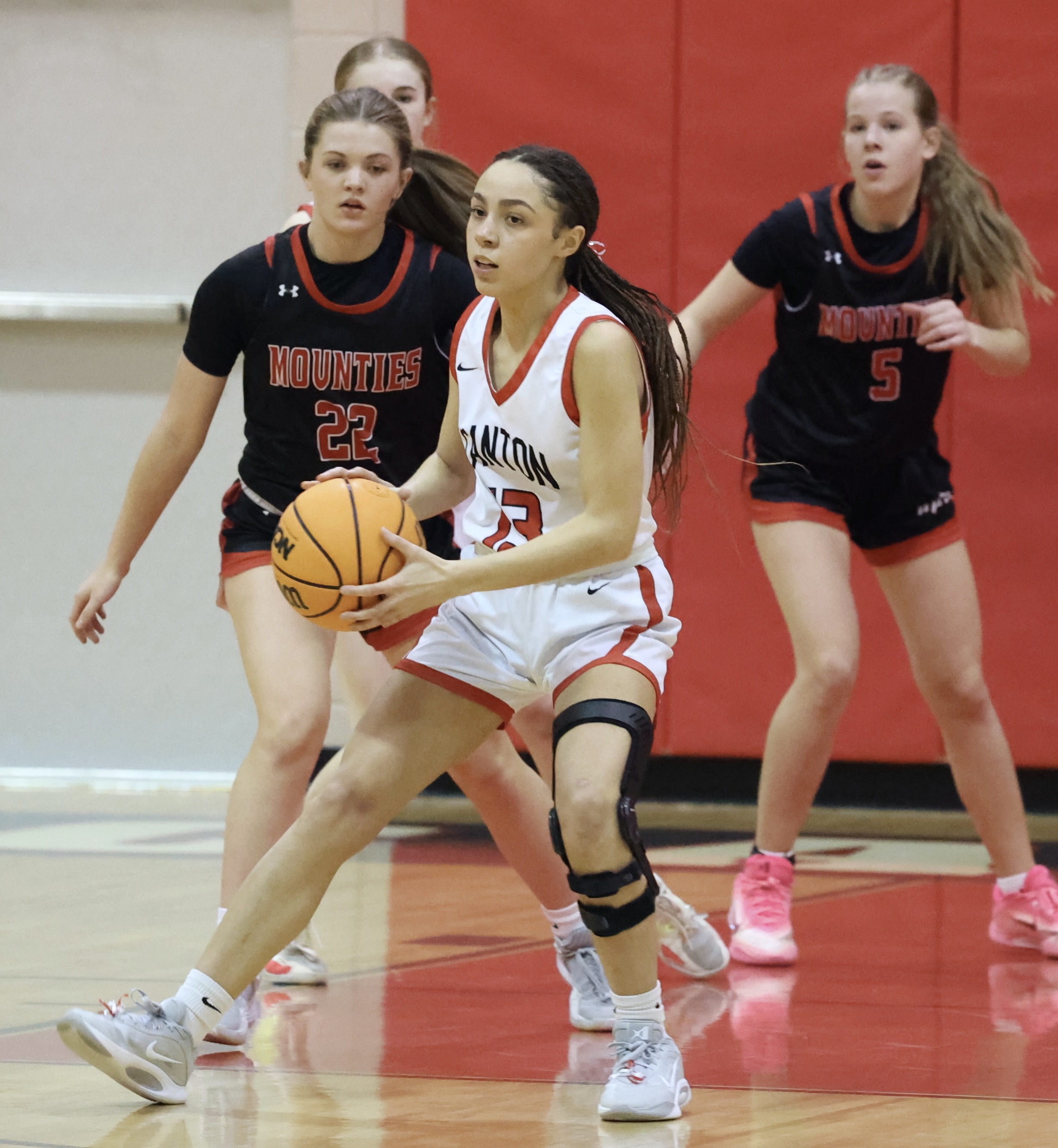 Three balls from Rockwell, and Cailyn Van Noy were the only buckets Canton got in the first quarter, while four different Mounties scored to give them an 11-7 lead after one.