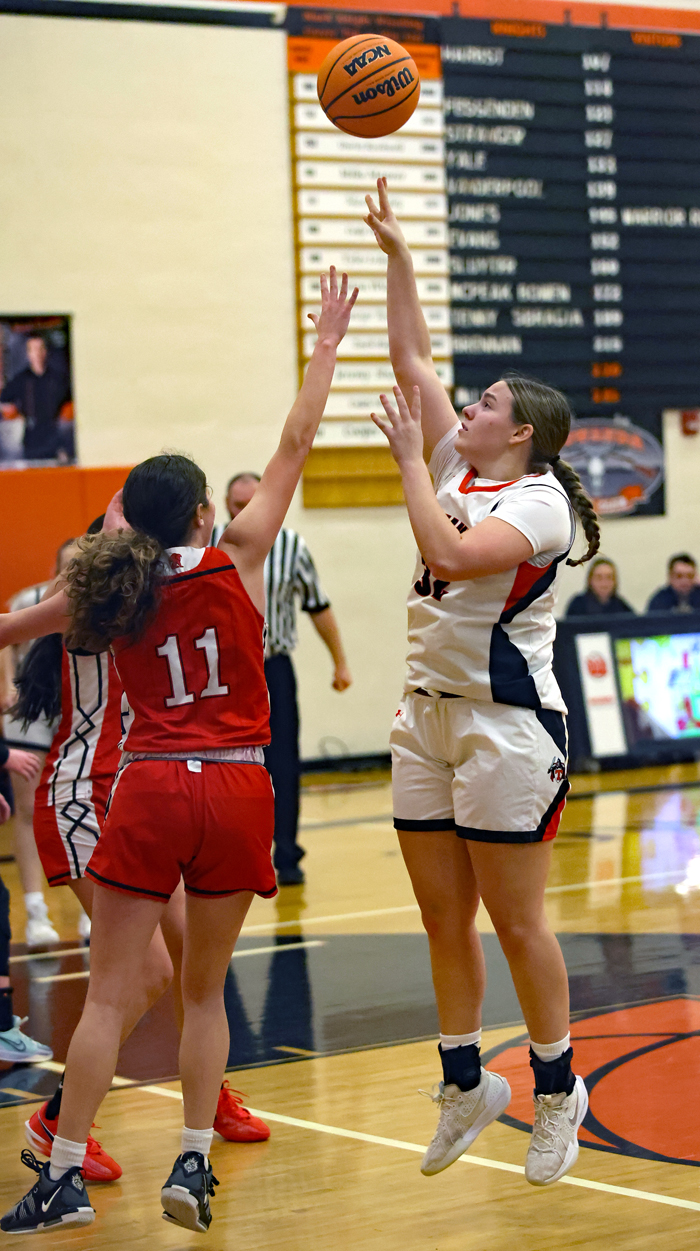 Brynn Woodruff had 16 points, five boards, five steals, and two blocks to lead the Knights with Payton Perry, and Mya Maynard getting eight points each. Perry also had five steals, while Maynard nabbed seven boards to go with three steals.