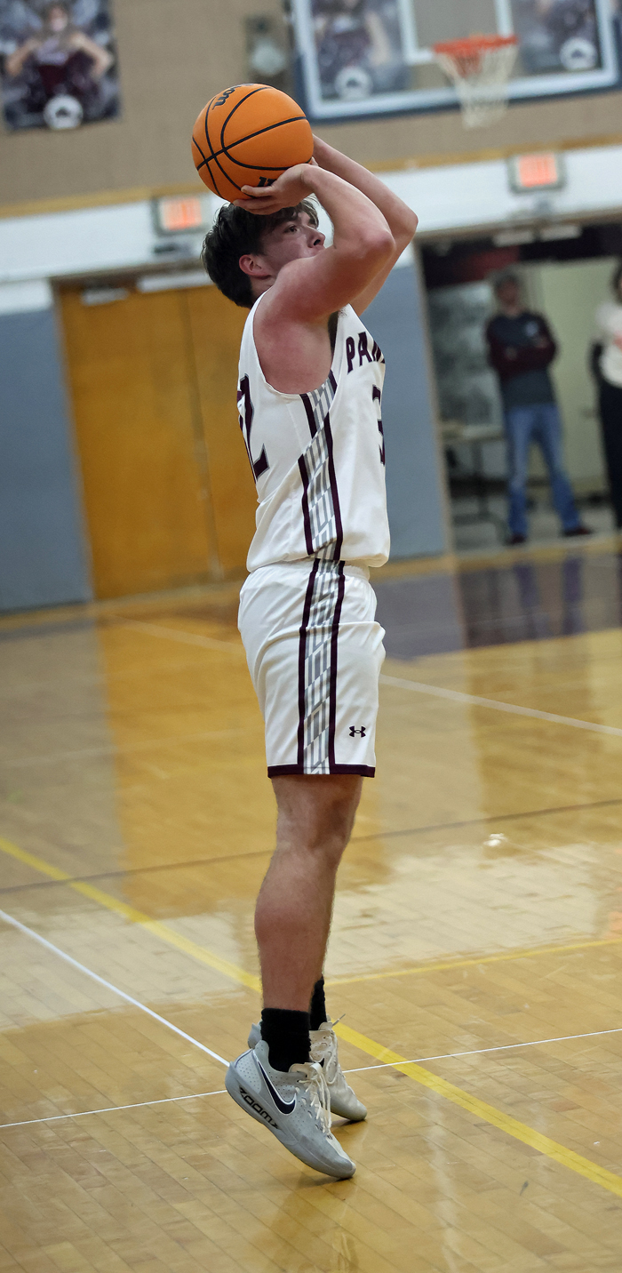 Gross and Burgert had two 3-balls each, with Gross scoring 10 points in the quarter for a 42-27 lead at the half.