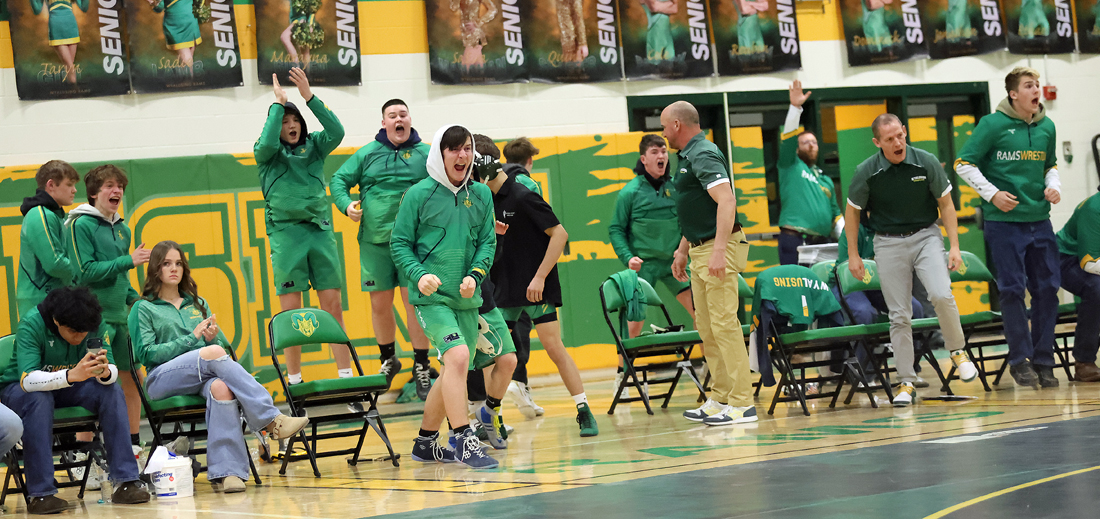 The Rams won 10 of the 13 bouts and had the match clinched after 152 pounds.