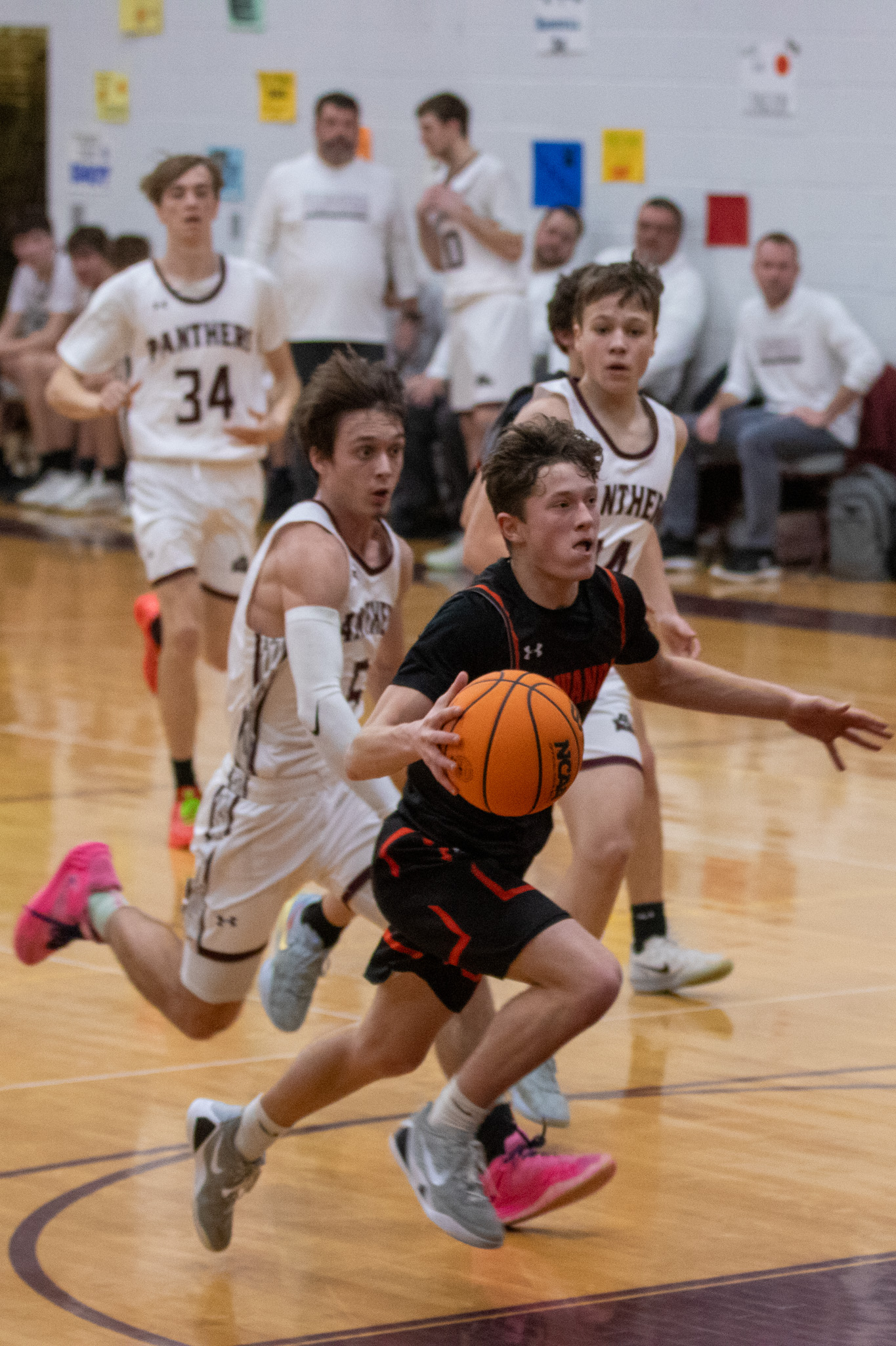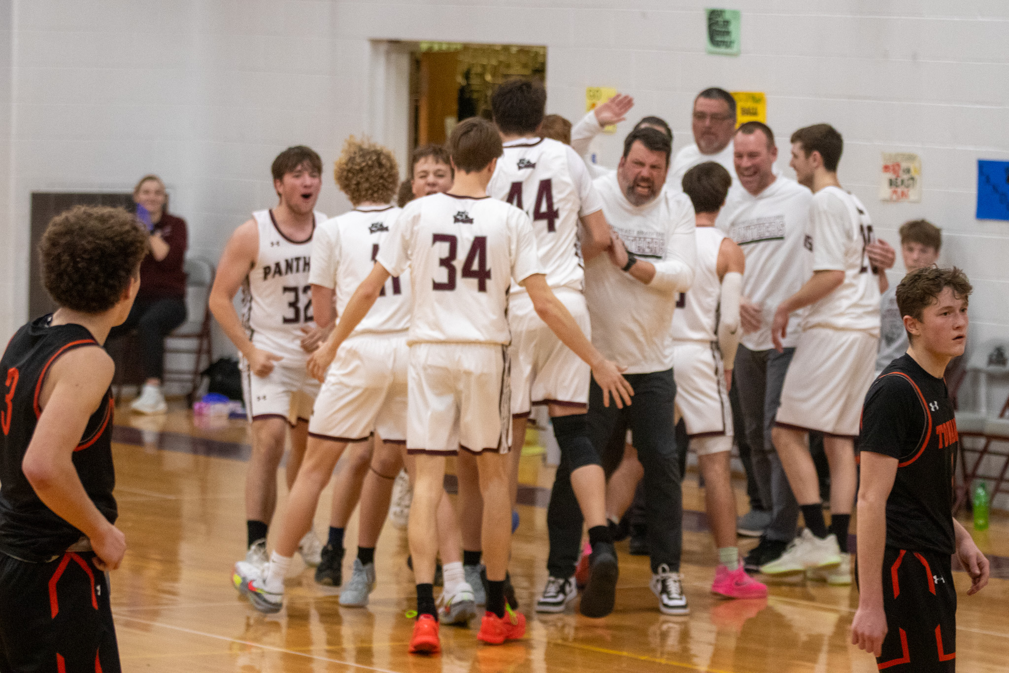 NEB won the JV game 50-29 as four players hit double figures for the Panthers - Gross (14 points), Landon Chapman (13 points), Anthony Johnson (11 points), and Landon Knolles (10 points).