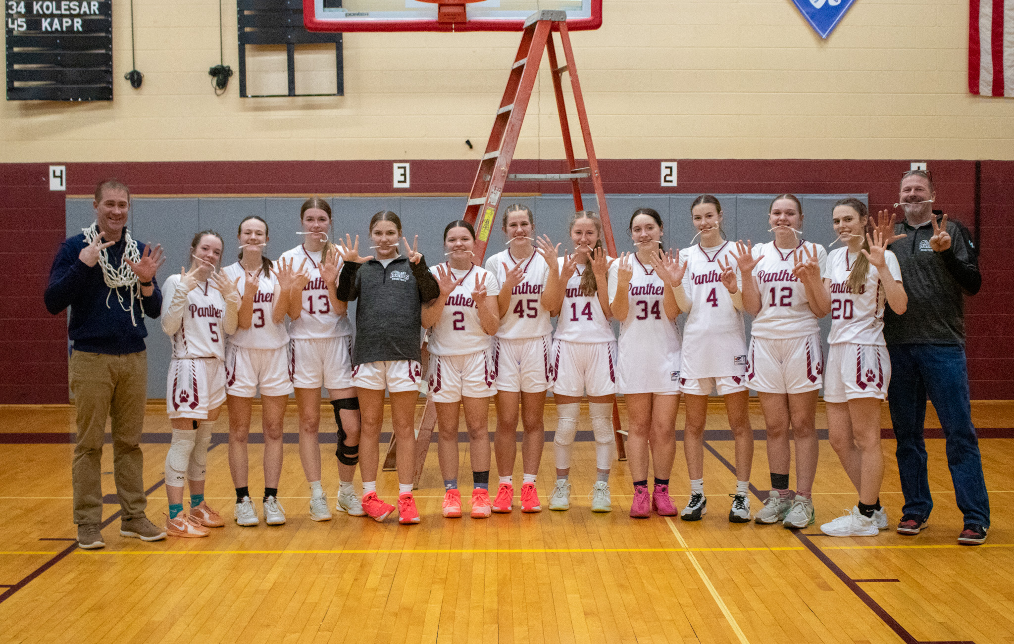 It was a group effort in the score book for the Panthers, as Kara Dughi led the way with 13 points, five boards, and three steals, as Leah had 11 points, five assists, and two steals.