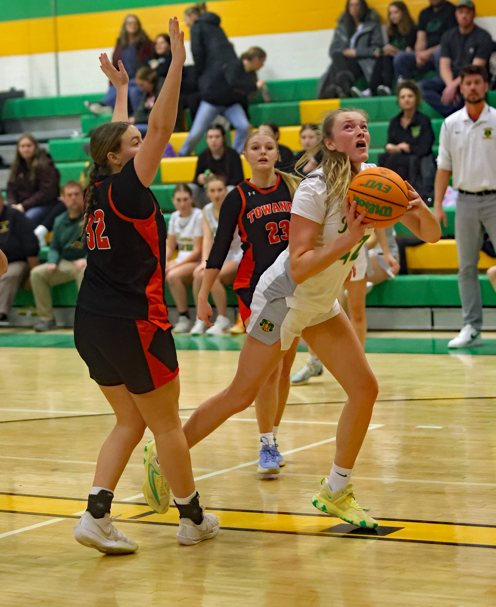 BY CHRIS MANNINGNorthern Tier Sports ReportWYALUSING — With a lot on the line Towanda coach Rob Gentile was glad to see his team play like it on Saturday as they shook off a slow start to beat Wyalusing, 47-33, during NTL girls’ hoops action.