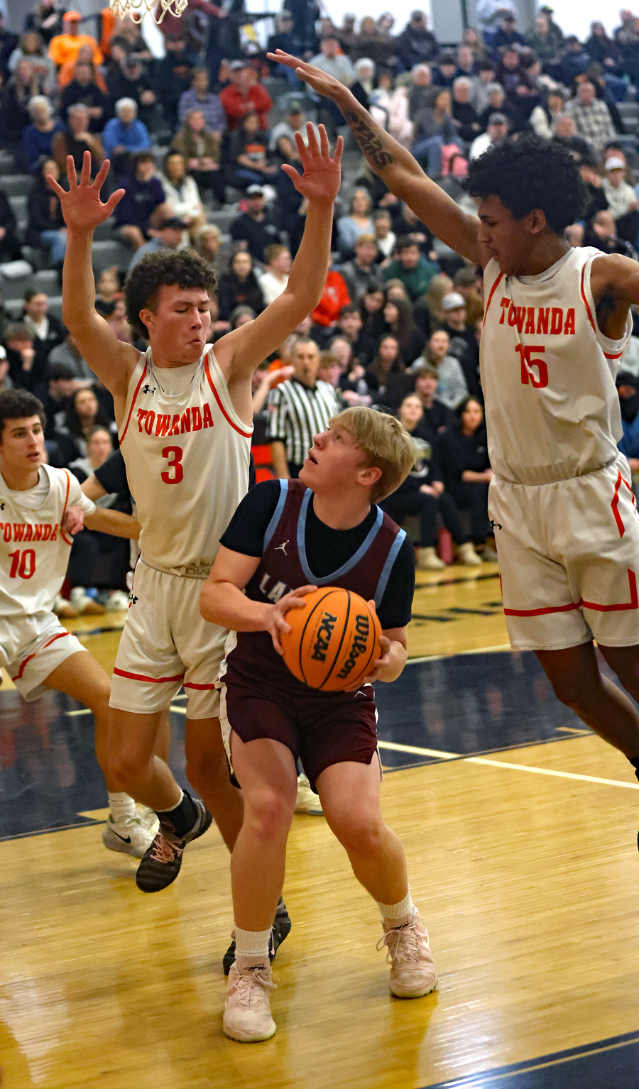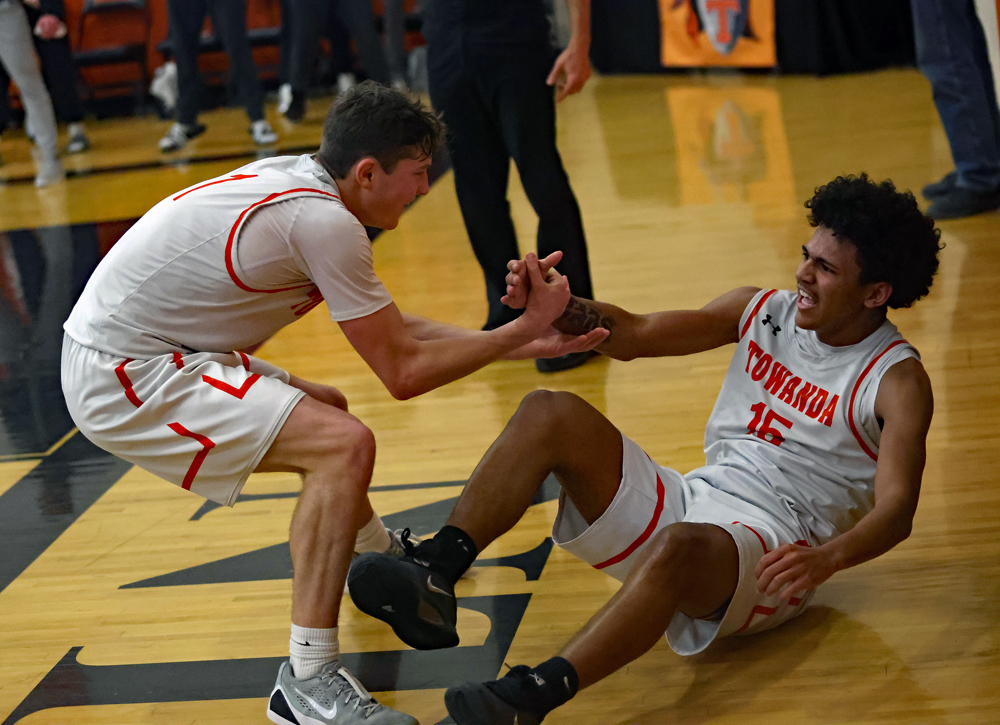 A Clark lay-up off a Thompson assist started Towanda’s third rally of the half, followed by a Thompson free throw, then a Welles jumper for a 54-44 score with 2:39 on the clock.