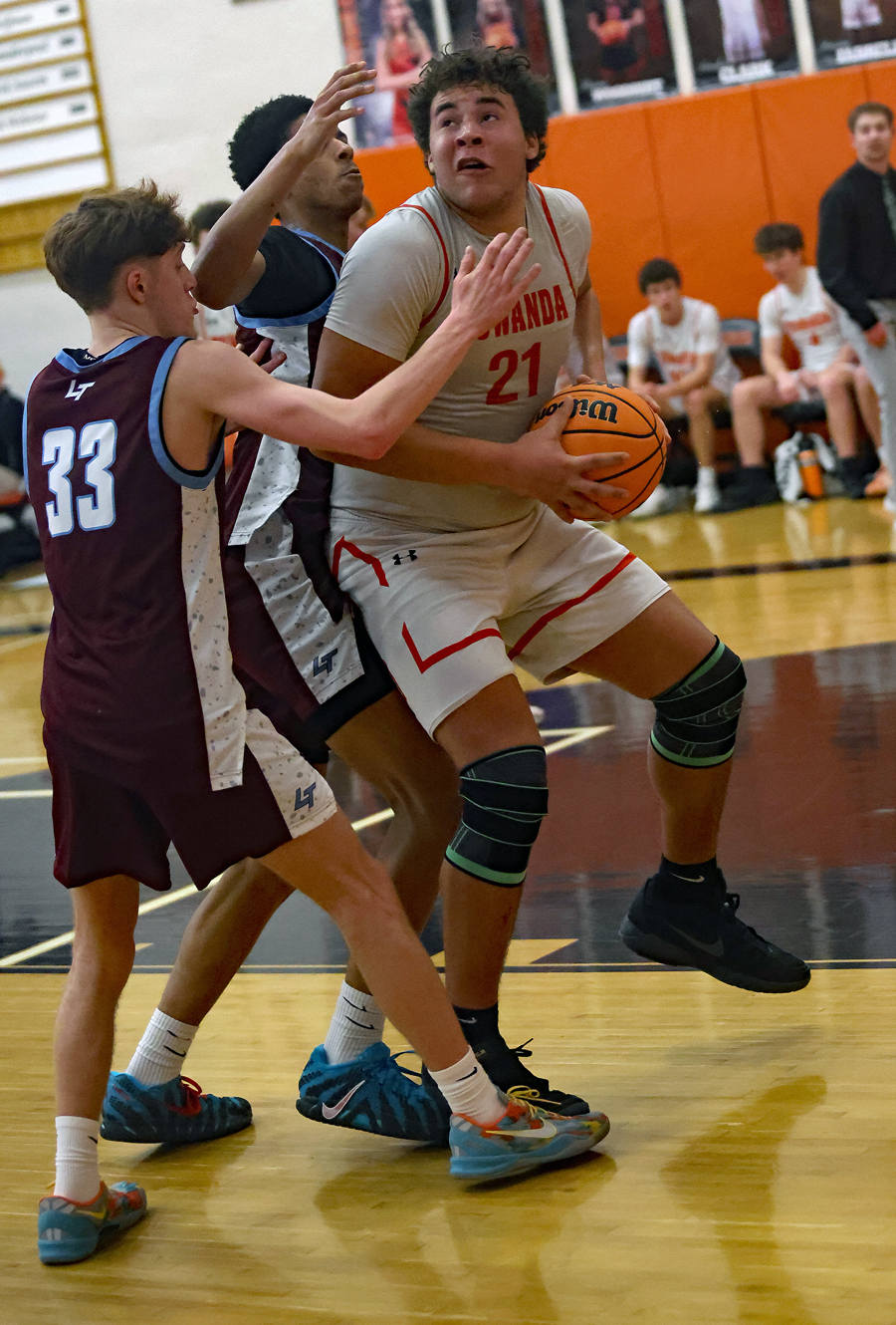 The Knights rallied in the third, getting the deficit to nine points at one point, only to watch the Loyalsock’s Brandon Cioffi hit back to back 3-balls to push the lead back to 46-31 at the horn.