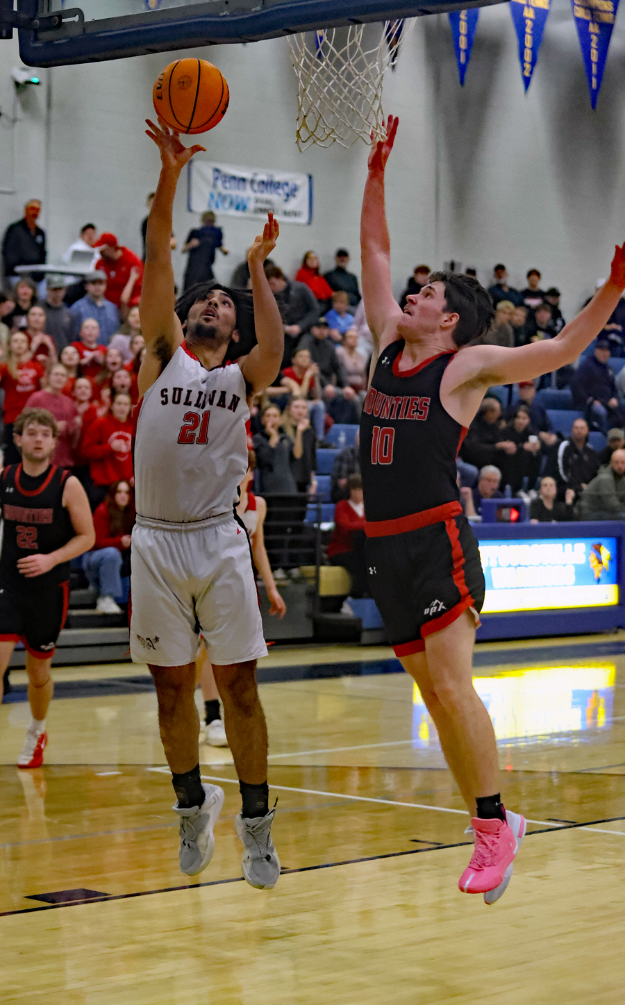 BY CHRIS MANNINGNorthern Tier Sports ReportMONTOURSVILLE — Sullivan County’s 58-54 win over NP-Liberty to claim the District IV, Class A boys basketball title was more than just a game - it was three. The first saw the Griffins fire out of the gate and take control, the second was a defensive slugfest as NPL slowly got back into it, and then the third was a second half that saw the top come off the building as both offenses lit up the scoreboard.