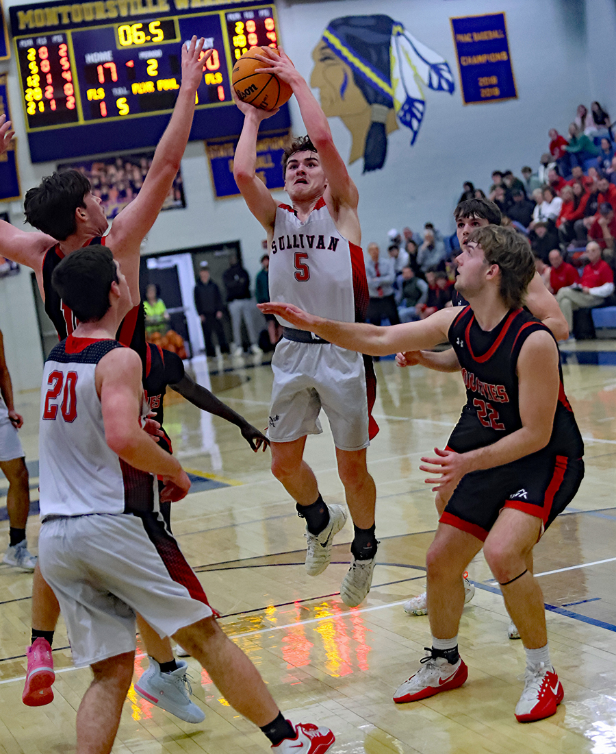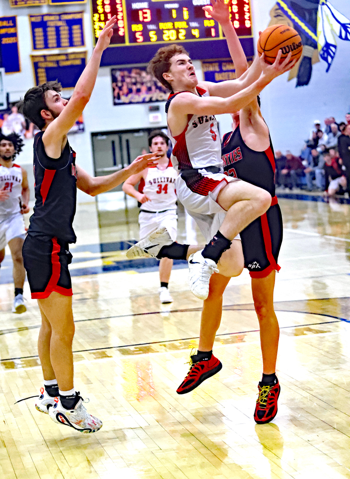 Smithkors had 12 points and nine boards to lead Sullivan, as Tucker Blasi netted 10 points to go with four steals.