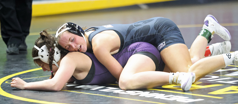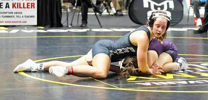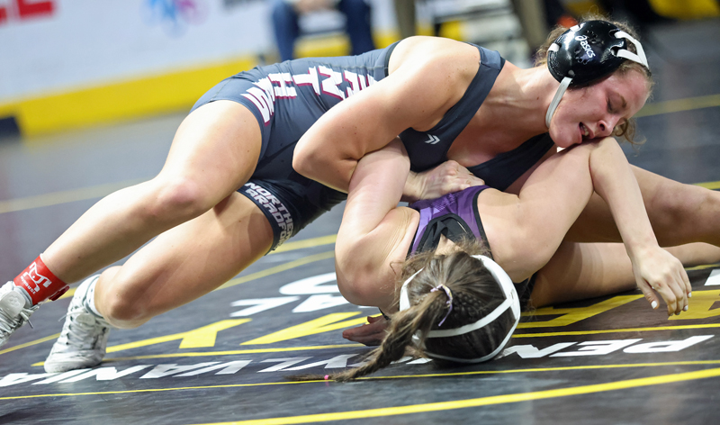 BY CHRIS MANNINGNorthern Tier Sports ReportHERSHEY — NEB’s Anaiah Kolesar continued her romp through the PIAA Girls Wrestling Championships as she rolled past Plum’s Saphia Davis 9-0 in the quarterfinals Friday morning.