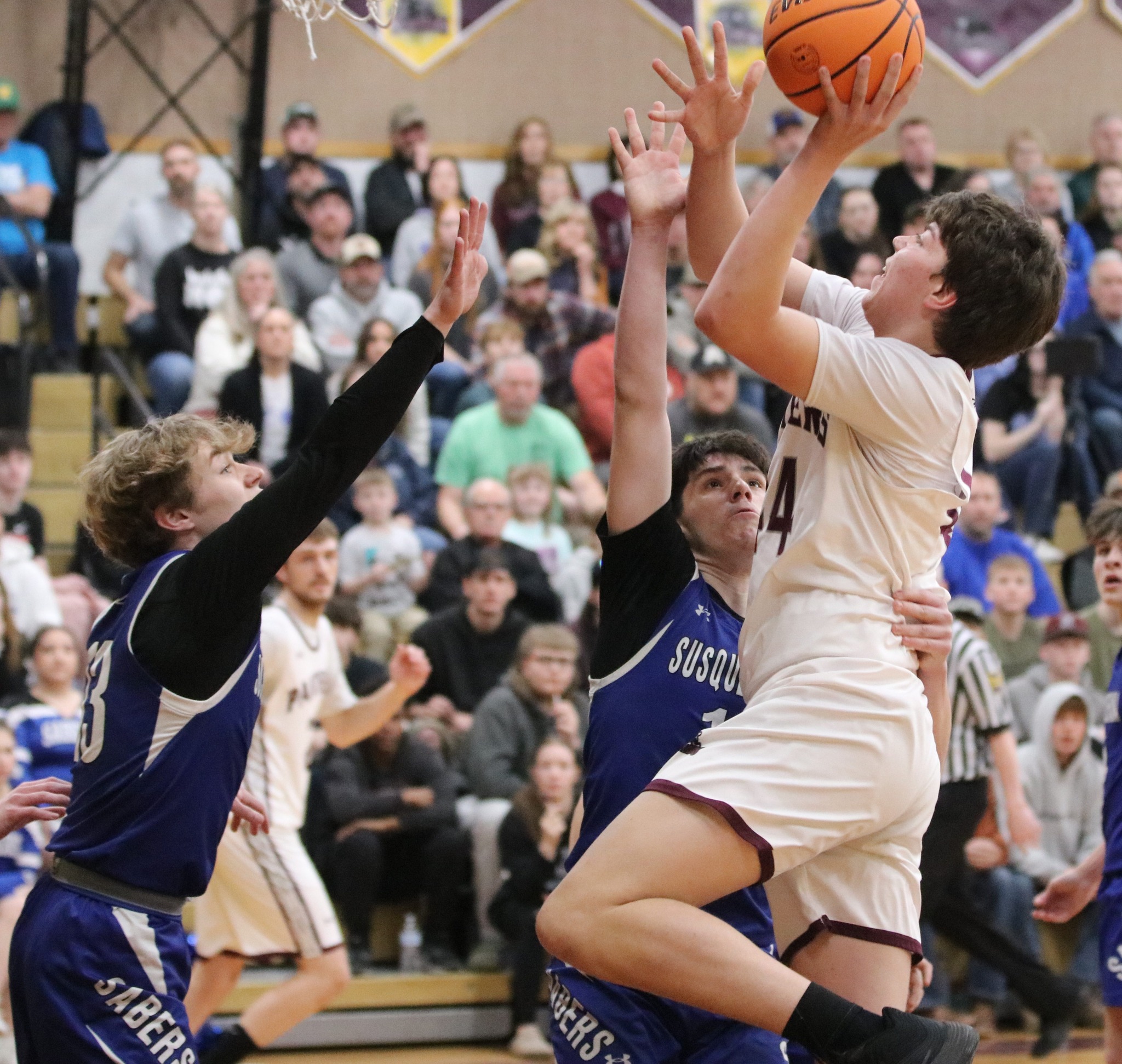 “Today was a great day of high school basketball. Super crowd, packed gym, just what you'd hope for a state playoff game,” said NEB coach Paul Burgert. “I thought we prepared as well as we could have this week, but we just didn't have it today. Hats off to Susqy they played well. Our defense wasn't quite to our standard, but the missed shots had a lot to do with it. As the misses piled up, it fueled them in transition and prevented us from getting set up. It seemed we were on our heels all day. But when you shoot 11-30 from two, 2-21 from three, and 11-24 from the foul line, it's hard to overcome that. The boys fought to the end, and I’m super proud of their effort.”