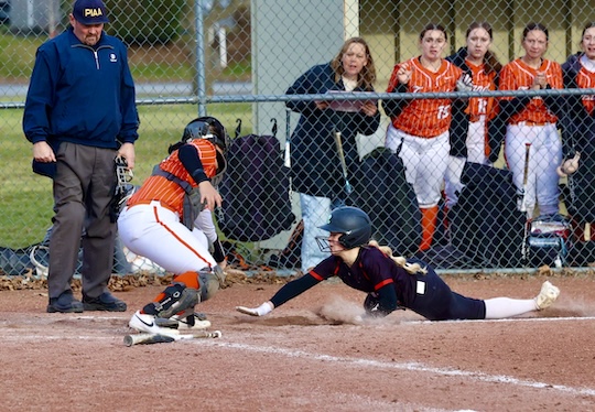 In the top of the second, Leila Cobb walked and moved to second on a Molly Roberts sacrifice bunt and Kaylen Sluyter walked. Both runners advanced on passed balls and scored on a Payton Perry infield fly which was misplayed by the Lady Mounties, giving Towanda a 3-0 lead that would hold up until the bottom of the sixth.