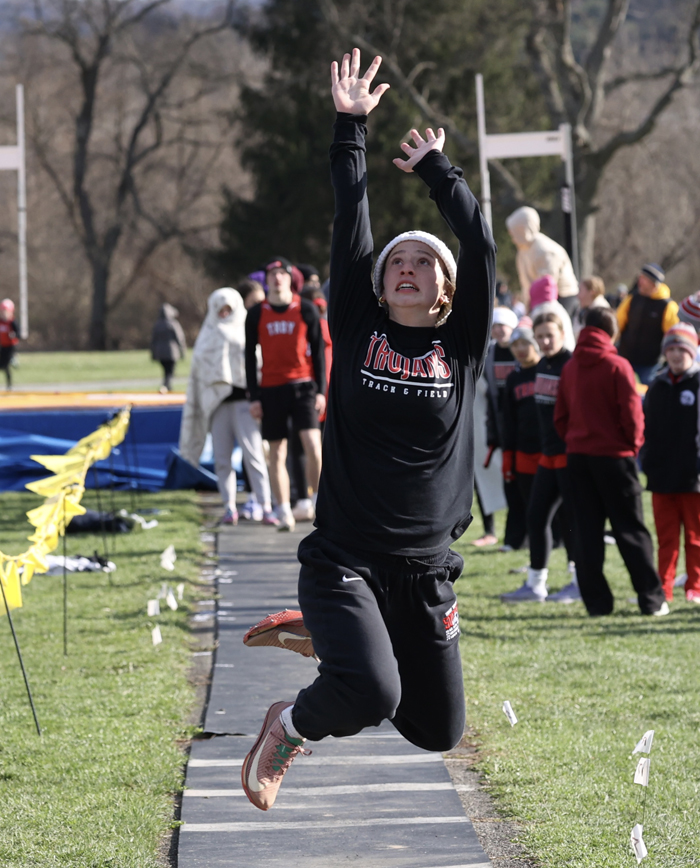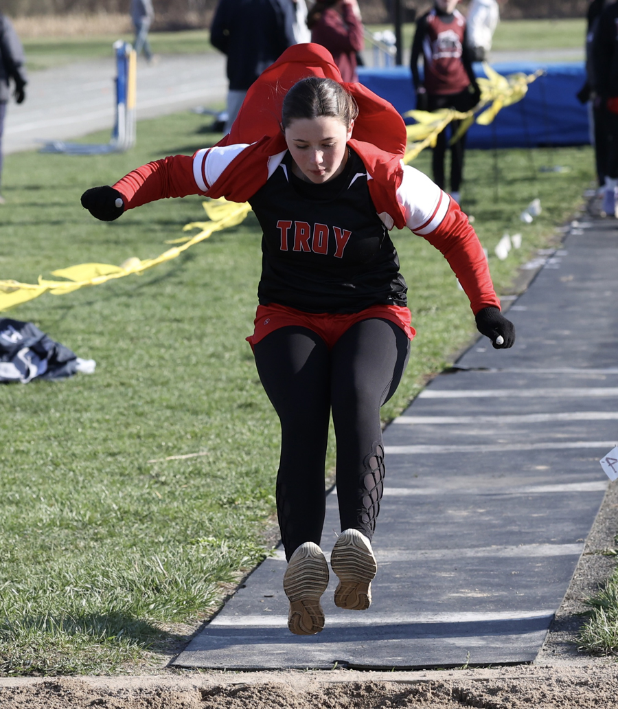 Troy swept the triple jump with Maddy Keeney (28-feet, 9 1/4-inches), Roy (28-feet, 3/4-inches), and Houghson (25-feet, 6 1/4-inches).