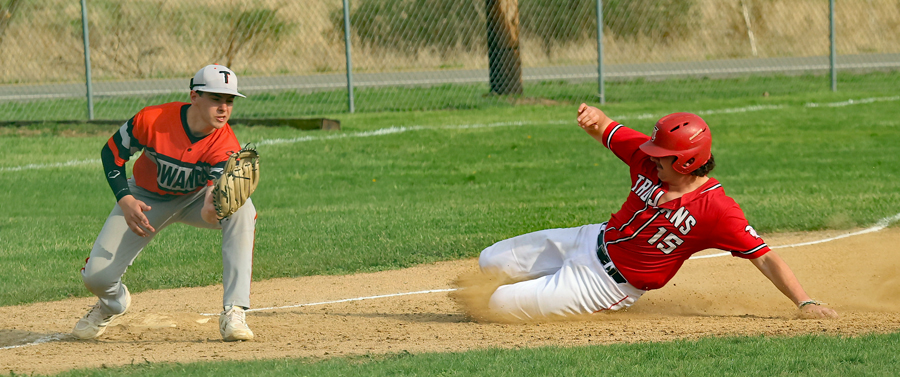 The Trojans answered, and again with two outs, as Trey Teribury reached on an error. Loxley would walk to keep the inning alive, with Trey Teribury eventually scoring on a passed ball for a 13-13 ball game.