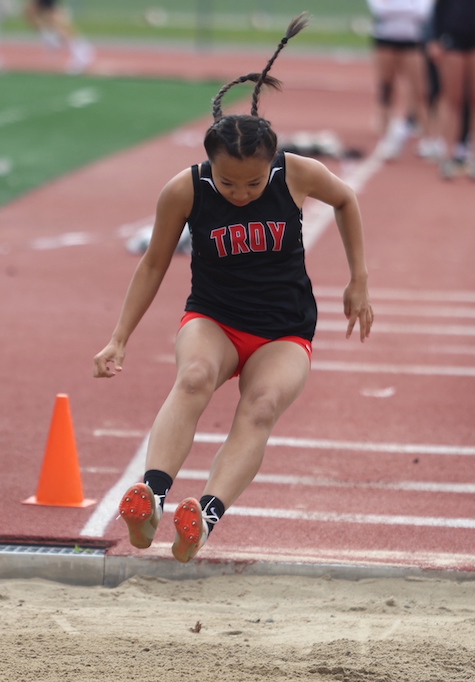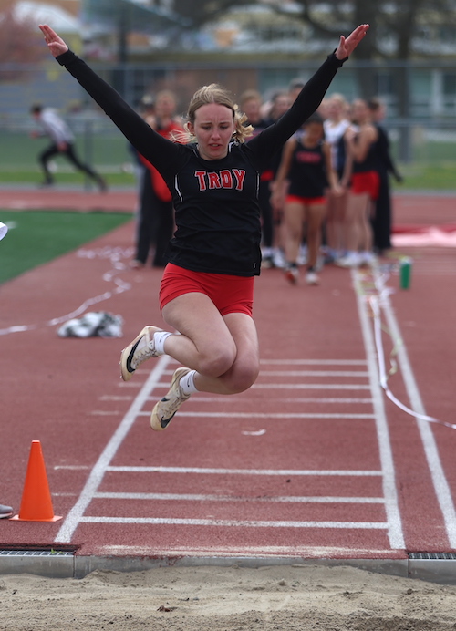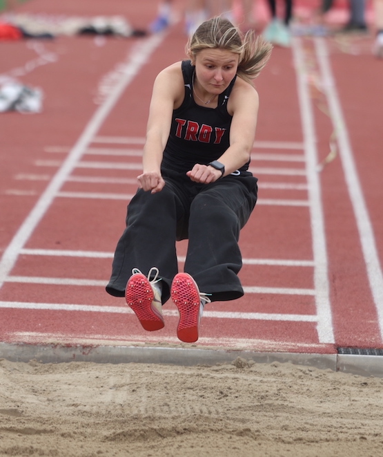 Troy’s Zyra Houghson (4-feet, 8-inches) was third in the high jump with teammate Maddy Keeney (14-feet, 11 1/2-inches) third in the long jump.