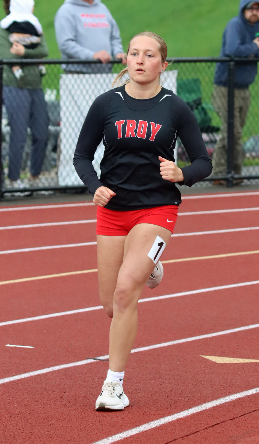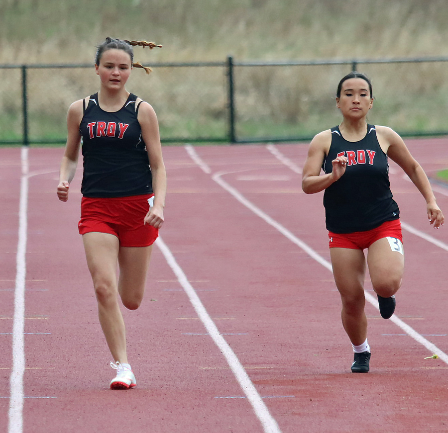 Roy (17.44) won the 100 hurdles as White (19.29) was third. Troy’s Ellie Spalding (14.13) won the 100 with teammate Alexis Hartford (14.88) in third.