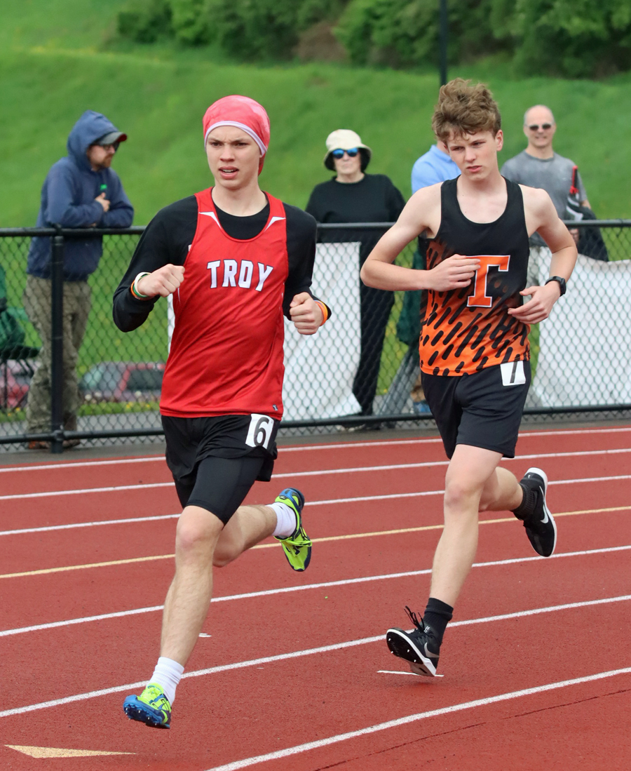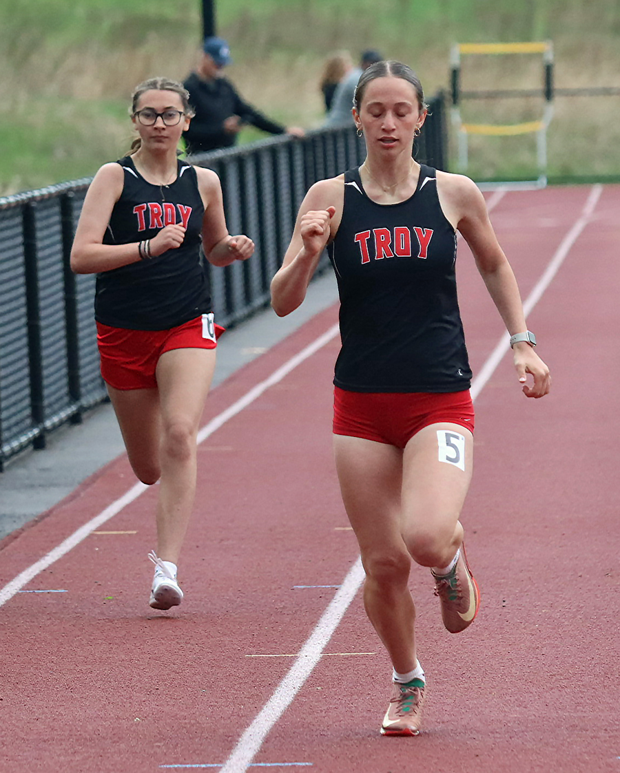 Troy won the 4x100 (45.83), with Evan Geer (53.45) winning the 400 as teammate Lucas Norton (57.03) was third. Mason Wulff (2:10.46) and Geer (2:26.43) went 1-2 in the 800.