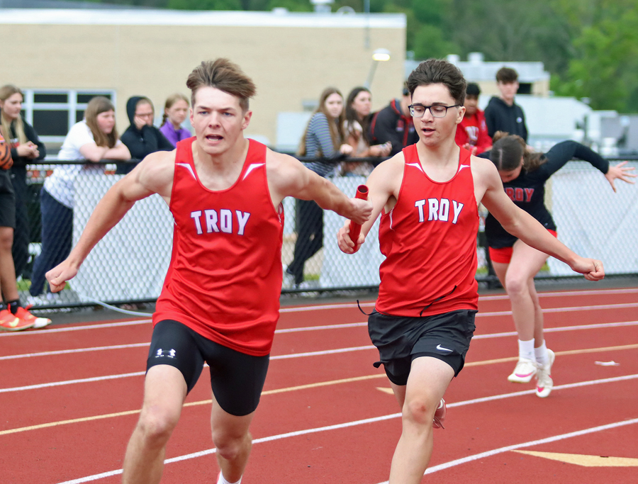 Troy’s 4x400 (4:39.33) won, with Colin Cavanaugh (5-feet) and Alex Breidt (4-feet, 10-inches) going 2-3 in the high jump.