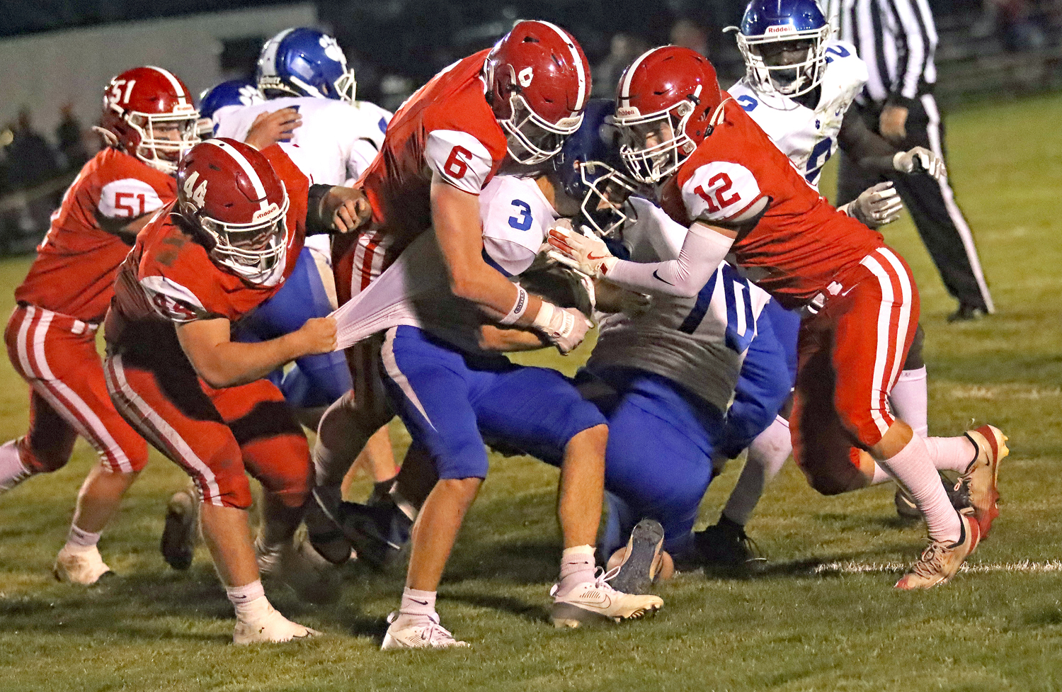 With 30 seconds left in the third Spencer Martin hit Roland Smith for a 48-yard scoring strike as Lykon-Leffler hit the point after for a 51-10 score.