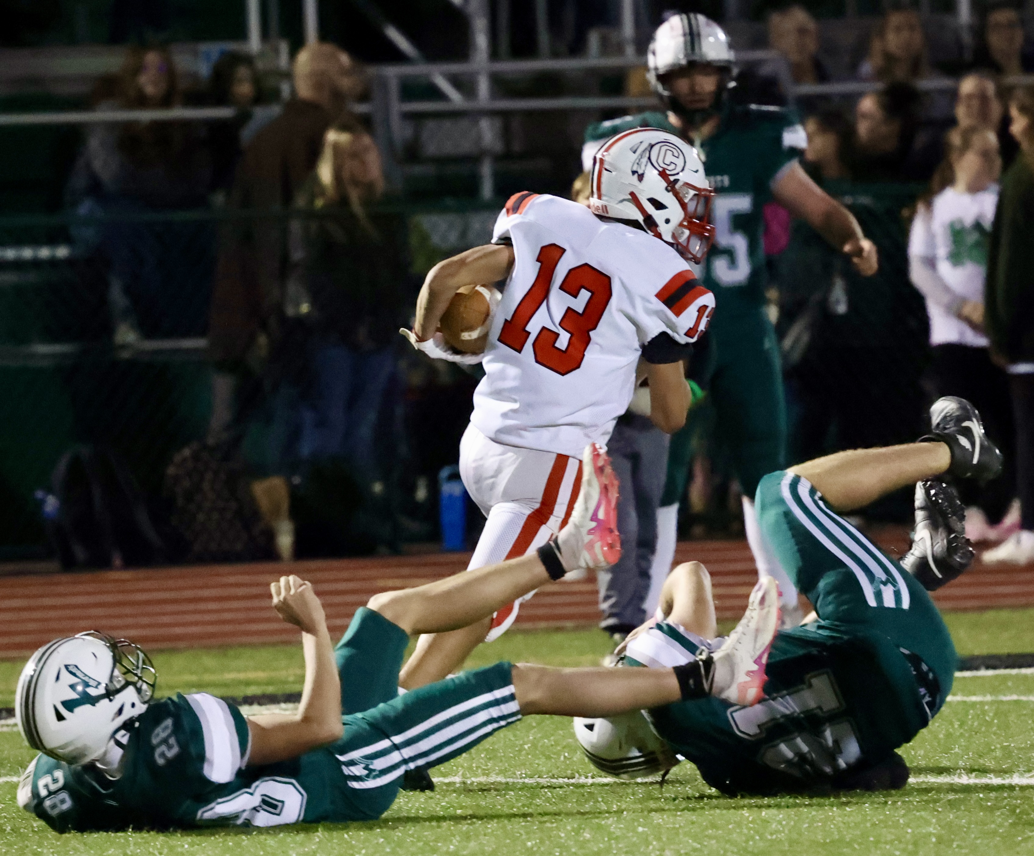 Enck then had back to back interception returns to the house for a 35-0 lead with 10:41 left in the half.