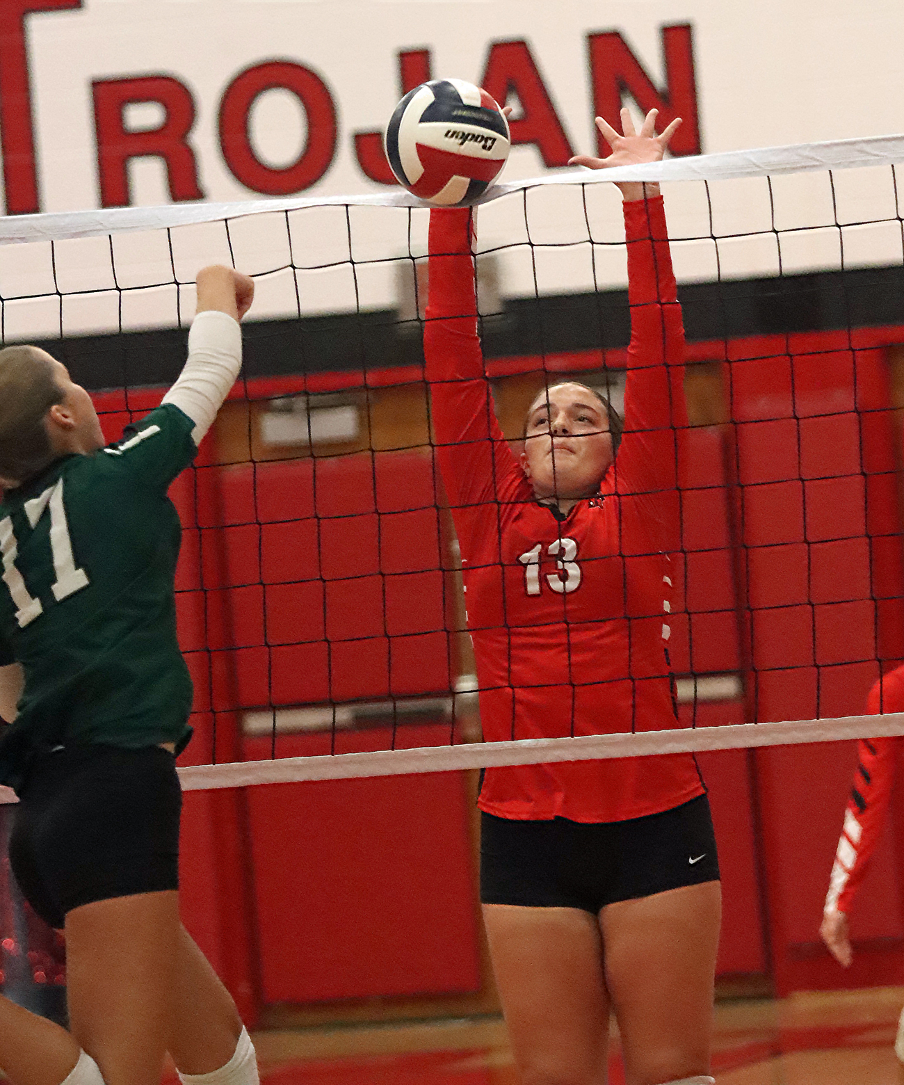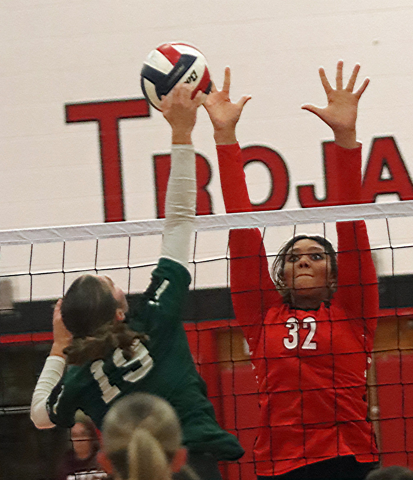 The Trojans would give the point back, but an Andrus kill sealed the win for Troy, 25-23.